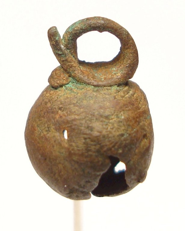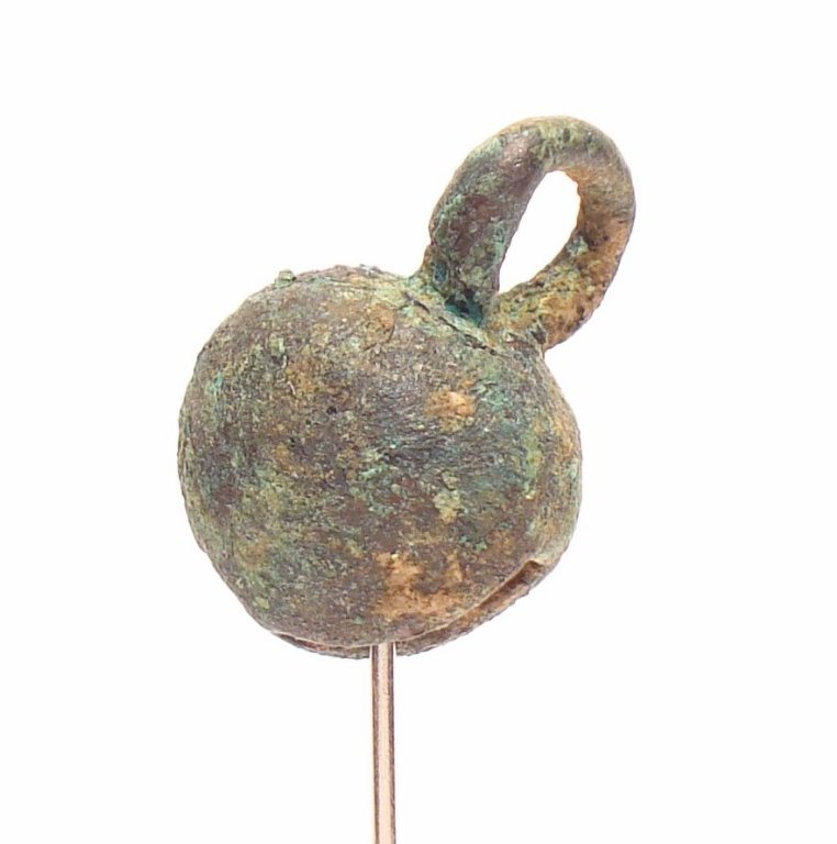 The suspension ring of this design shows no signs of the connection with the smelting channel, but there is a metal clapper in the interior.