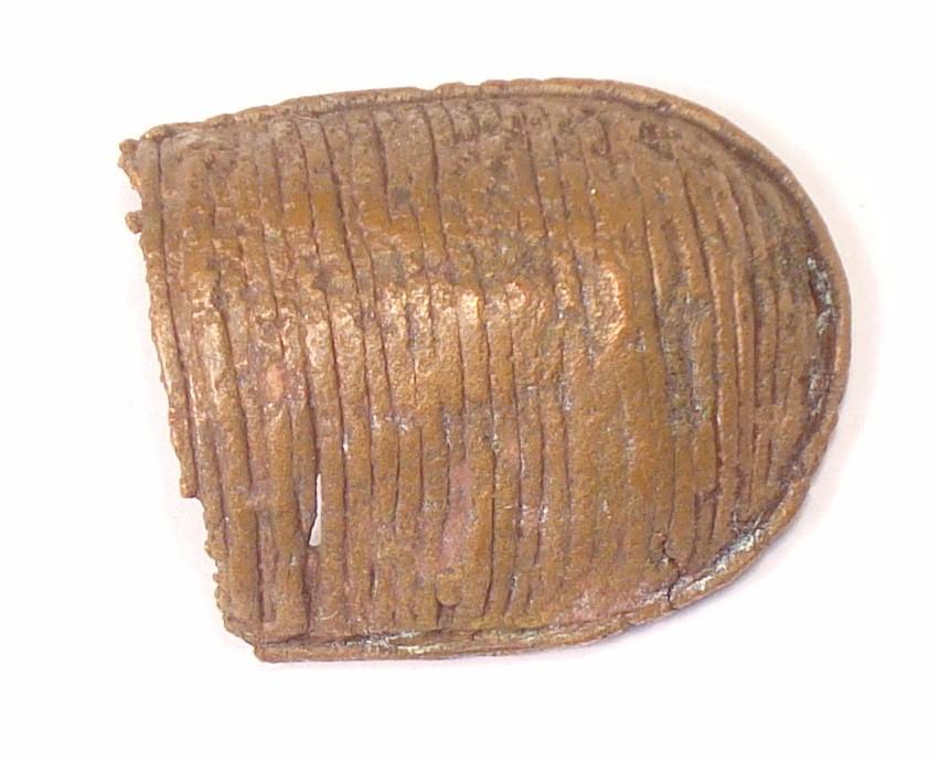 Fig 22. Smooth surface bell formed by flattening the wax cords. The suspension ring of this design shows the connection with the smelting channel. Also, there is evidence of a flaw in the smelting process that left one part of the opening filled with metal.