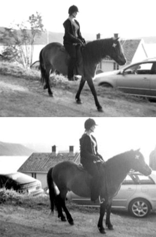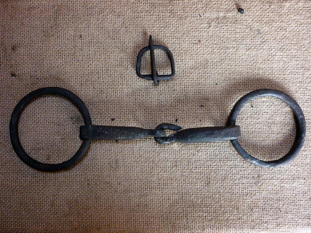 The horse responded very well to the bit, even though the bridle was designed without a noseband. With the average thickness single-jointed mouthpiece, and the loose rings, the bit acts relatively mild to medium severe. A single-jointed mouthpiece has a ‘nutcracker’ action and squeezes the tongue when rein pressure is applied. However, it is often regarded as less severe than a mullen mouthpiece, since it provides more space for the tongue. The loose rings make the bit more mobile in the horse’s mouth, so that it can adjust to the moves of the horse’s head. Yet, the heavy weight of the reconstructed bit seemed to make it more severe than a modern lightweight bit, since it acted stronger on the bars. Thus, the horse responded with only light rein pressure applied.