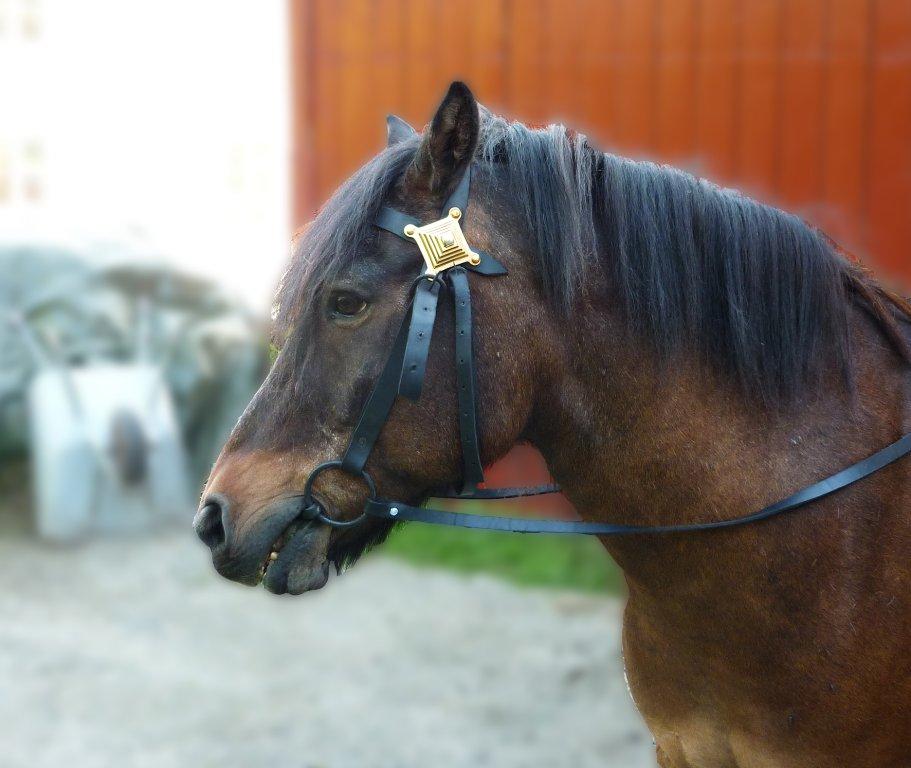 After finishing the reconstruction, the bridle was tested on the Northlands pony Bruno. Both the length of the cheekpieces and the throatlash were adjusted with the buckles. However, the fixed size of the headpiece and browband was a little too large for the horse. There are considerable variations in size even among specimen of the same breed. Many of the Iron Age bridles, as the ones from Beckum and Valsgärde, seem to have been decorated with riveted mounts also on the cheek pieces, the browband and the noseband, thus limiting the freedoms of adjustment even further. Furthermore, the archaeological material from the late Iron Age in Scandinavia indicates that horses were highly prized status symbols. They were regarded as special animals that often followed their owner into the grave, or in some cases even got their own grave. The horse harness was often deposited in the grave with the horse, something that indicates that horses could have had their own ‘personal’ equipment (Bunse 2010, Meling 2000, Oma 2000, Pétursdóttir 2007, Rech 2006). It is therefore more than likely that bridles with riveted harness mounts have been custom fitted to each horse.