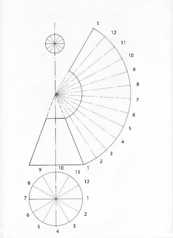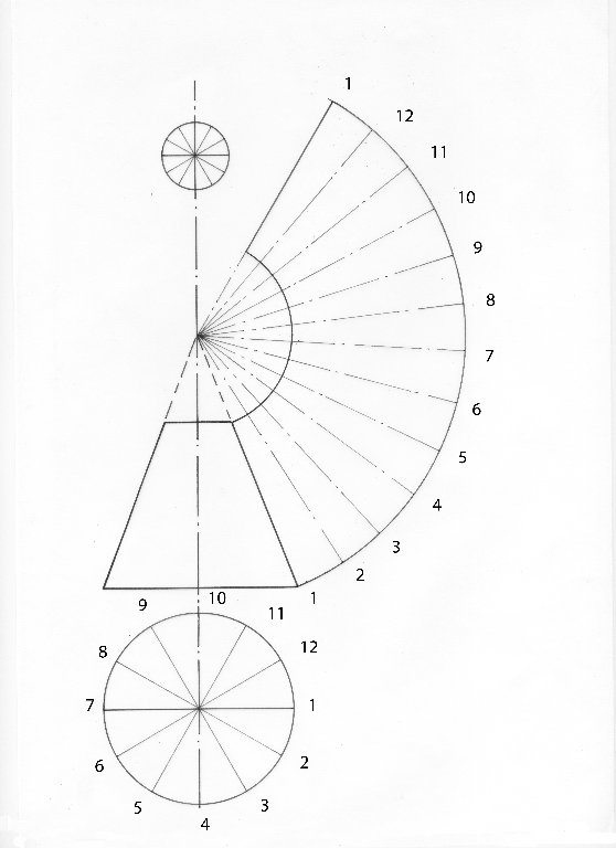 The development of the frustum of a cone is shown in Figure 3 to 10.