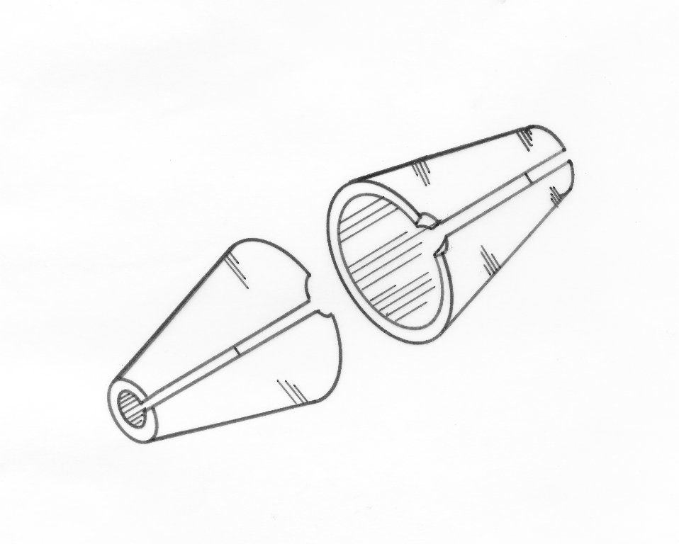 The mould made from two truncated cones requires a soldered joint, though this is a simple matter for any competent metal worker. It is possible that there are times (when in the field) when the necessary equipment for soldering might not be available. Therefore it was decided to investigate the possibility of producing a mould from a single piece of sheet copper.