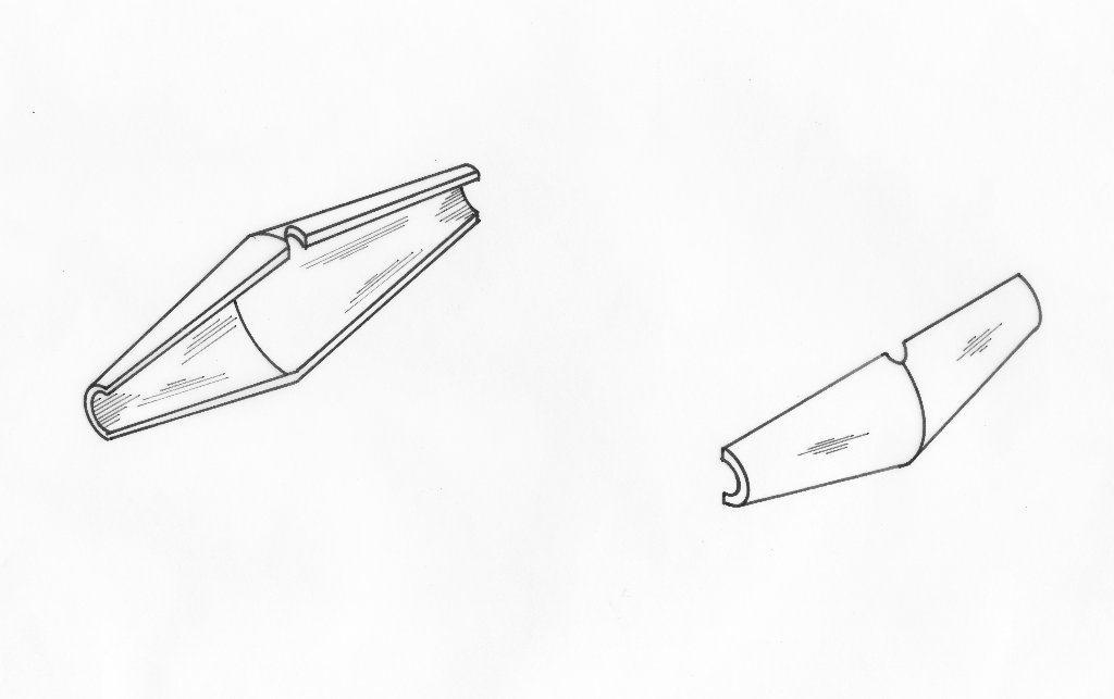 It is possible that the weights made from a double frustum could have been cast as a cylinder then hammered to shape. The mould shown in Figure 13 was made from a single piece of sheet copper. (See Figure 13, 14 and 15)
