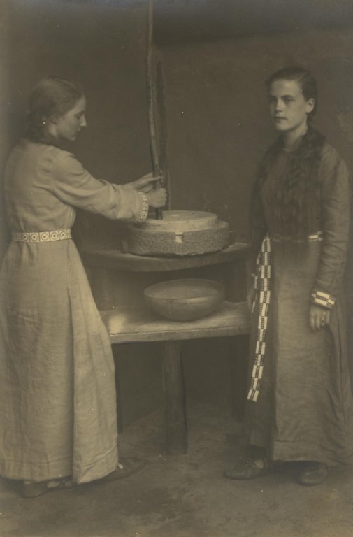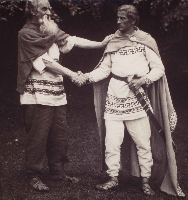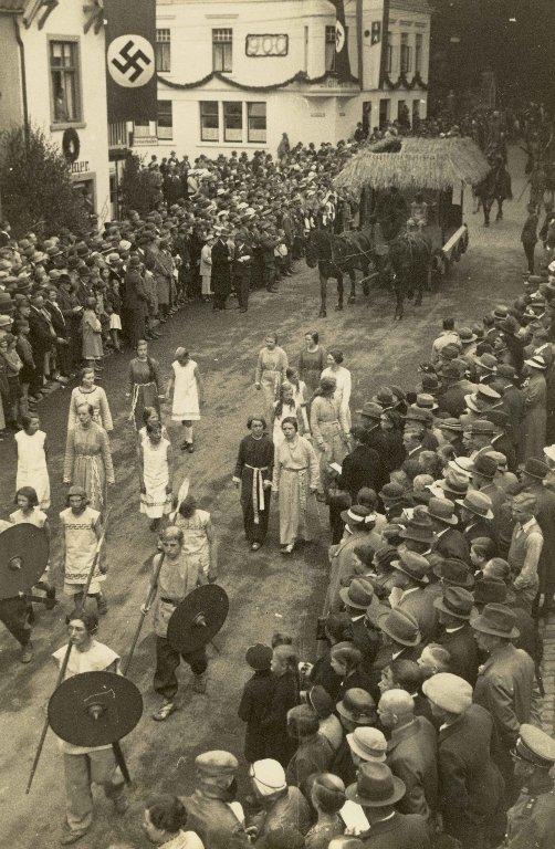 What was presented was a radically new Germanic image, more strictly oriented to archaeological knowledge than it had been previously in the Weimar Republic, the presentation of the Germanic past was subject to scientific control. For example, one use of the newly built houses was as a set for the ethnic theatre piece Oerl Bark, for which Germanic costumes had been produced following archaeological examples (See Figure 2). The Blut und Boden play seems today to be clichéd, but it fitted into the trend of National Socialistic theatre politics of 1936. The idea back then was to step away from the middle class Proscenium theatre and make scenes, preferably in the open air, and interact with the public. In the same summer of 1936 a forest theatre in Berlin, applying these new strategies, had opened in grand style. However, such theatres dropped out of the cultural political fashion by the winter of 1936.