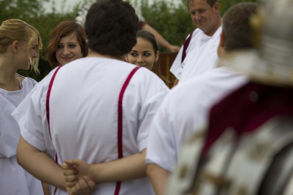 The public then got to see a Roman military display by Savaria Legio, a traditional fighting society from Szombathely, followed by a gladiator fight and slave-market. A traditional celebration of the Matralia to honour Mater Matuta, the goddess of dawn, was the last bit of the day program. Besides the day program with staged activities at specific times, several Roman activities were presented throughout the day, like: