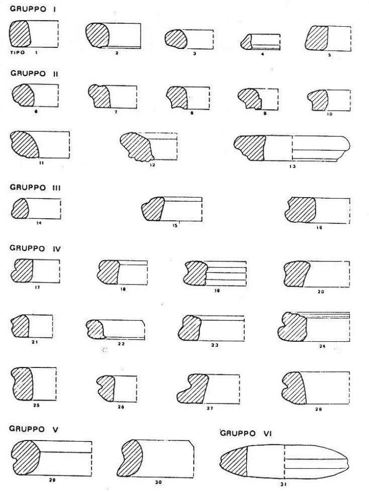 To avoid excessive local temperatures over the slotted platform, where flames, smoke, ashes and hot gases rise, we believe that supports were used to separate artefacts from the platform (this supposition in based on archaeological records). Either in Greece6 or in the West7 , from the Archaic Age to later periods, we record unturned wedge and stirrup shaped supports and big, turned ring shaped supports that were insert between the slotted platform and the artefacts to increase the stability of stacks or to separate the artefacts from the platform. Ethnographic analogy suggests two other possible solutions: first one is to put pottery fragments on the slotted platform in order to avoid the direct contact between the artefacts and the fire; second is to place tiles or bricks between the platform and the bowls. Both these solutions were used until recently by the potter CosimoVestita from Grottaglie (Cuomo di Caprio1982, 165-180). In Etruscan-Padan plain, the archaeological analysis of the technical elements called âsupportsâ contributed to a primary and temporary classification based on empirical analysis (See Table 1).