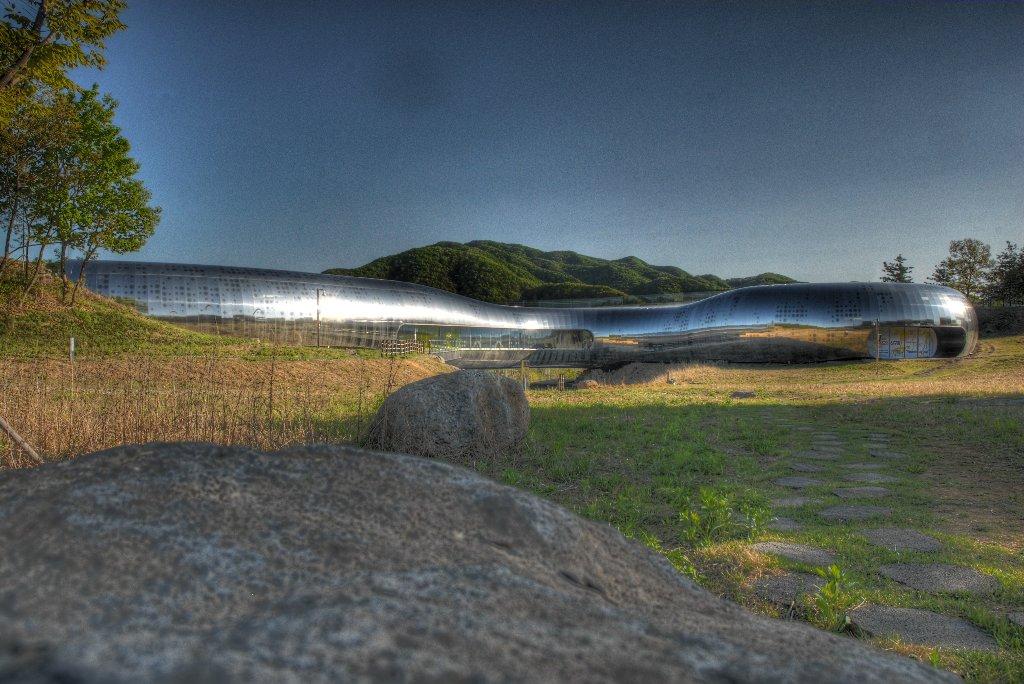 Like a stranded UFO the building is settled between the hills at a river (See Figure 1), the sun reflects off the metal outer skin. Standing in the entrance area, you feel as though you are in a film by Stanley Kubrick, but as you pass through into the structure it is a surprise to find yourself outside in the middle of the African savannah, surrounded by prehistoric people and all kinds of animals. The new Prehistory Museum in the north of South Korea unites futuristic architecture with the archaeology of humankind in an elegant way and attracts a million visitors yearly with its charm.