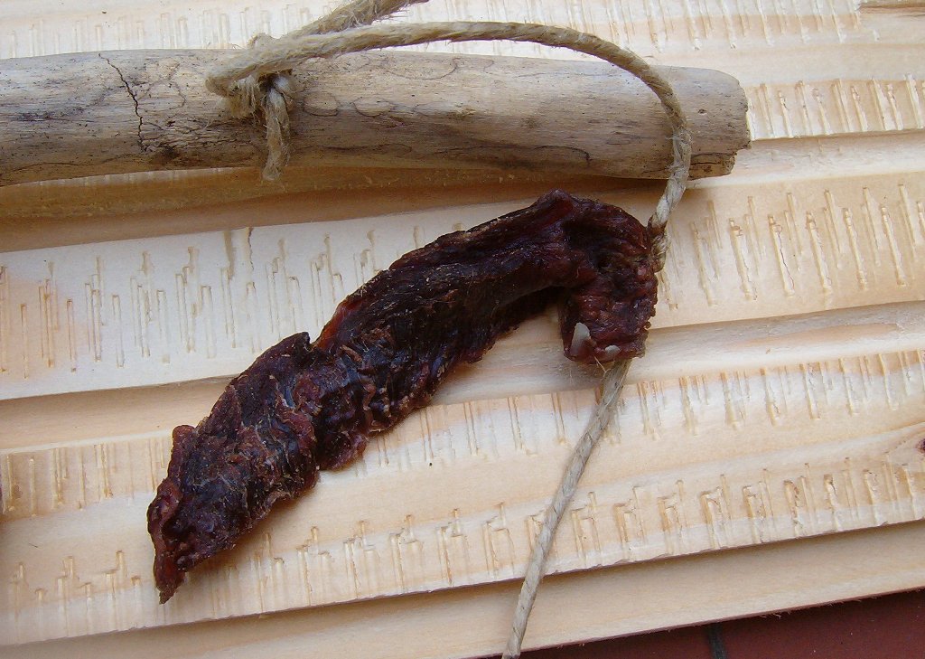 The analysis conducted on the samples demonstrated a good edibility of dried meat that meets the current European Regulations for healthy food. The product was consumed by the author. It was odourless, stringy, greasy and almost tasteless. The colour was reddish brown, with a texture similar to leather. The thickness was very small compared to fresh meat, making it easy to cut with a knife of flint. The meat broke almost like a biscuit. Chewing was difficult and the author needed to soften it in his mouth, which required a lot of work the jaw muscles. It 's likely that in the past the meat was rehydrated before being consumed.