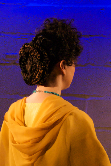 The hair is divided by an ear to ear parting over the top of the head (See Figure 2). From this division, the voluminous hair nearer the face is directed forward, the rest is directed backward. The back hair is divided into many small braids that are then coiled into a wide bun (See Figure 3). The ends of the braids are tucked into the centre of the bun. I estimate the length of back hair necessary to recreate this braided bun to be approximately 50-75 cm depending on head circumference). This is well within the norm for maximal hair length (the longest a person’s natural hair can grow, provided it is never cut).