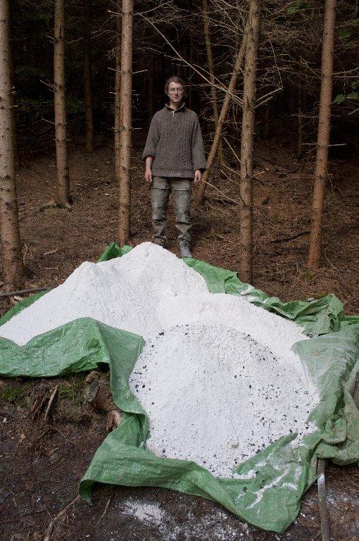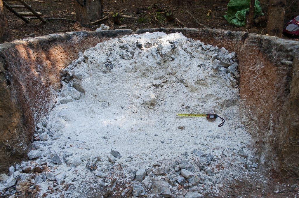 When taking the vault apart, we found that the top layer of limestone was not burnt enough (See Figure 11). The total weight of not-burnt or only partially burnt limestone was 500 kg. The rest of infill consisted of lime (See Figure 12). On the bottom there was a 21 – 23 cm thick layer of ash and embers.