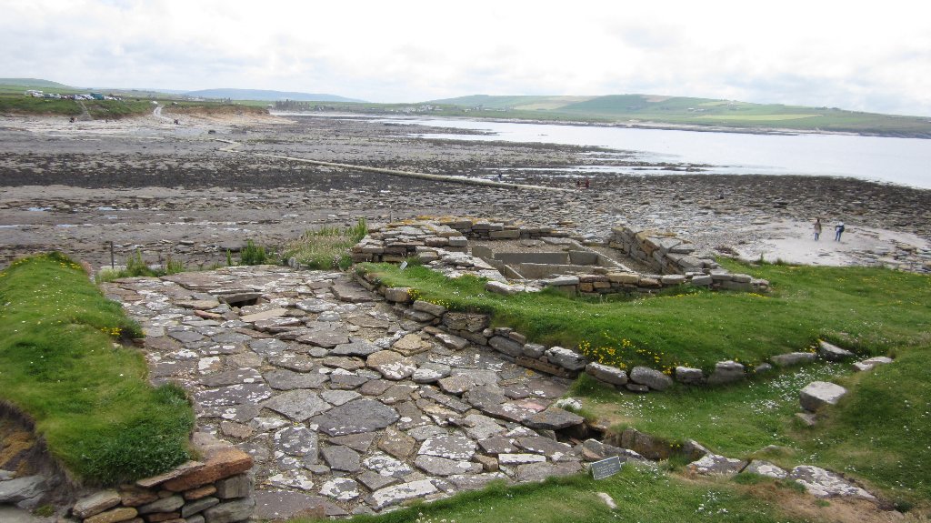 There are the remains of a large Norse settlement on a tidal island off the north coast of Orkney,