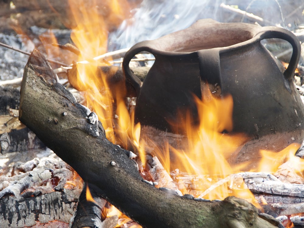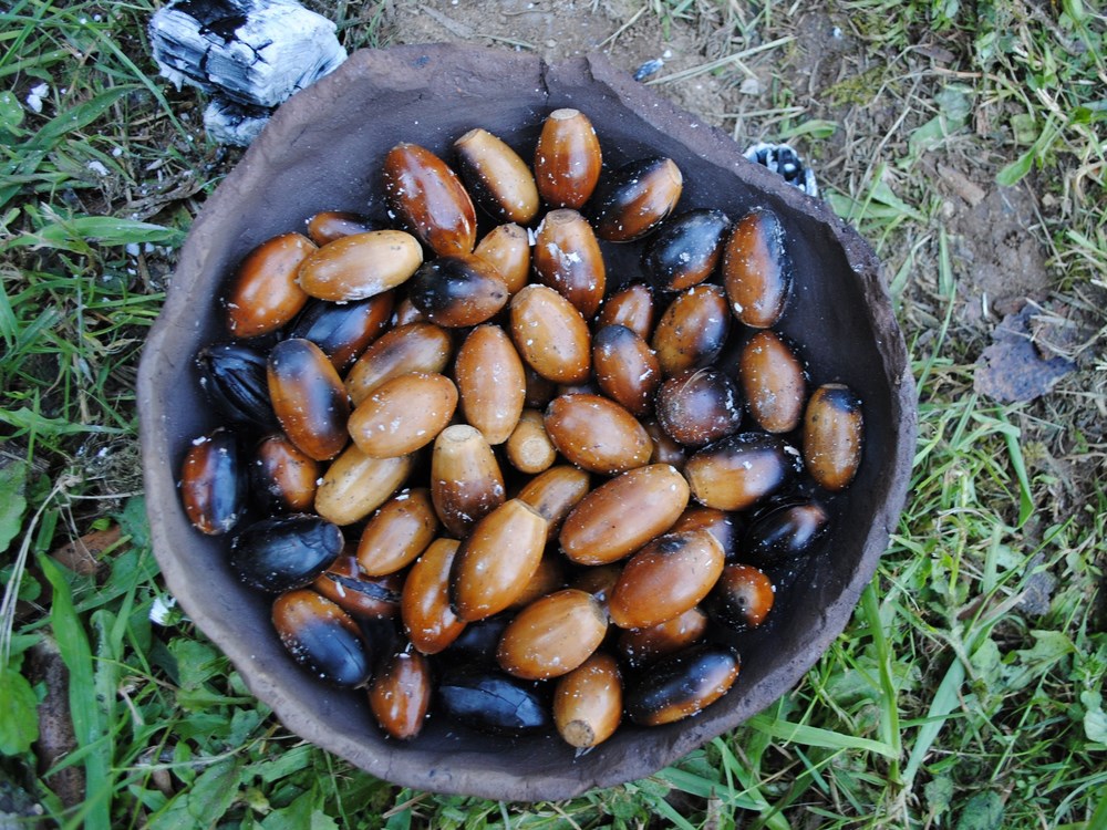 The second method consists in scalding the fruits: putting them in boiling water for about 30-60 minutes (See Figure 4). This process softens up acorns, making it easier to grind with saddle querns.