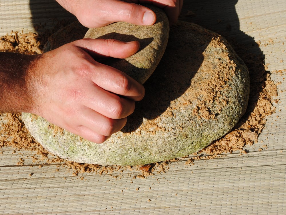 The resulting flour in the case of cereals is relatively rough, but of course this depends on the time that was lent to the task of reducing it to the fullest and the possible removal of the posterior bran sifted through. One must add that one of the biggest advantages of saddle querns are they versatility because they can be used to grind grain and larger fruits, such as acorns.