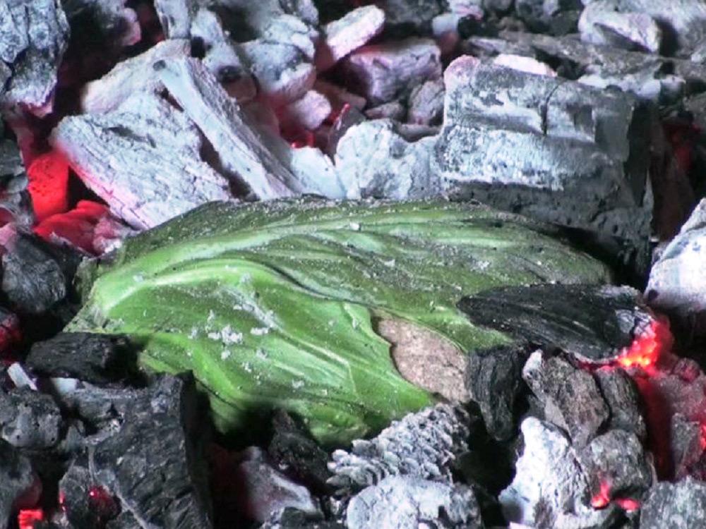 The baking of bread could be done following various methods, and we tested two of them with positive results, the first consists of depositing the dough coated with collard leaves (See Figure 6) in the coals of a fireplace. This method might have been the most common due to its simplicity and the absence of ovens in most settlements. Collard (Brassica Oleracea) was traditionally used for baking bread on fireplaces in rural Galicia. In addition, Brassica/Sinapis are present in the archaeobotanical record (Teira 2010, 141), and in organic remains analisys(Prieto et al. 2005, 197) from some hill forts.
