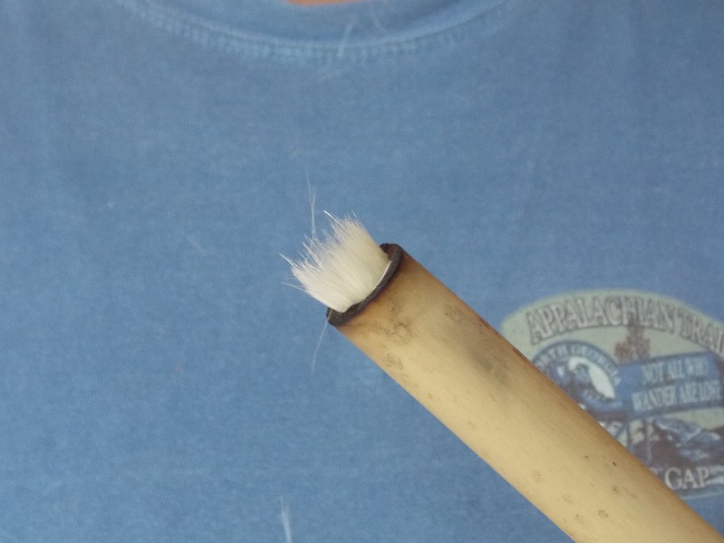 I sand the joints after I use a sharp knife to cut the area where the leaves grew out of the joint. I sand the mouthpiece to finish my gun. The Cherokee polished and burnished the outside of their blowguns. After I have the outside the way I want it, I will put a coat of light oil to protect the gun from moisture. You can use any of the rub-on type wood oils. Do this whenever you feel the need for the life of the blowgun. The patina on an old blowgun gives the blowgun character.