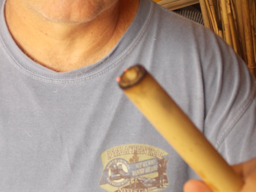 Some Cherokee do not burn out the joints of the blowgun. They use a metal tool to punch out the joints. A pointed tool is needed for this. The greener the cane, the easier this is to do. Green cane can be punched out with a smaller diameter piece of cane or a hardwood stick. If the cane is really dry, you can crack the joints, so be careful (Nash 1963).