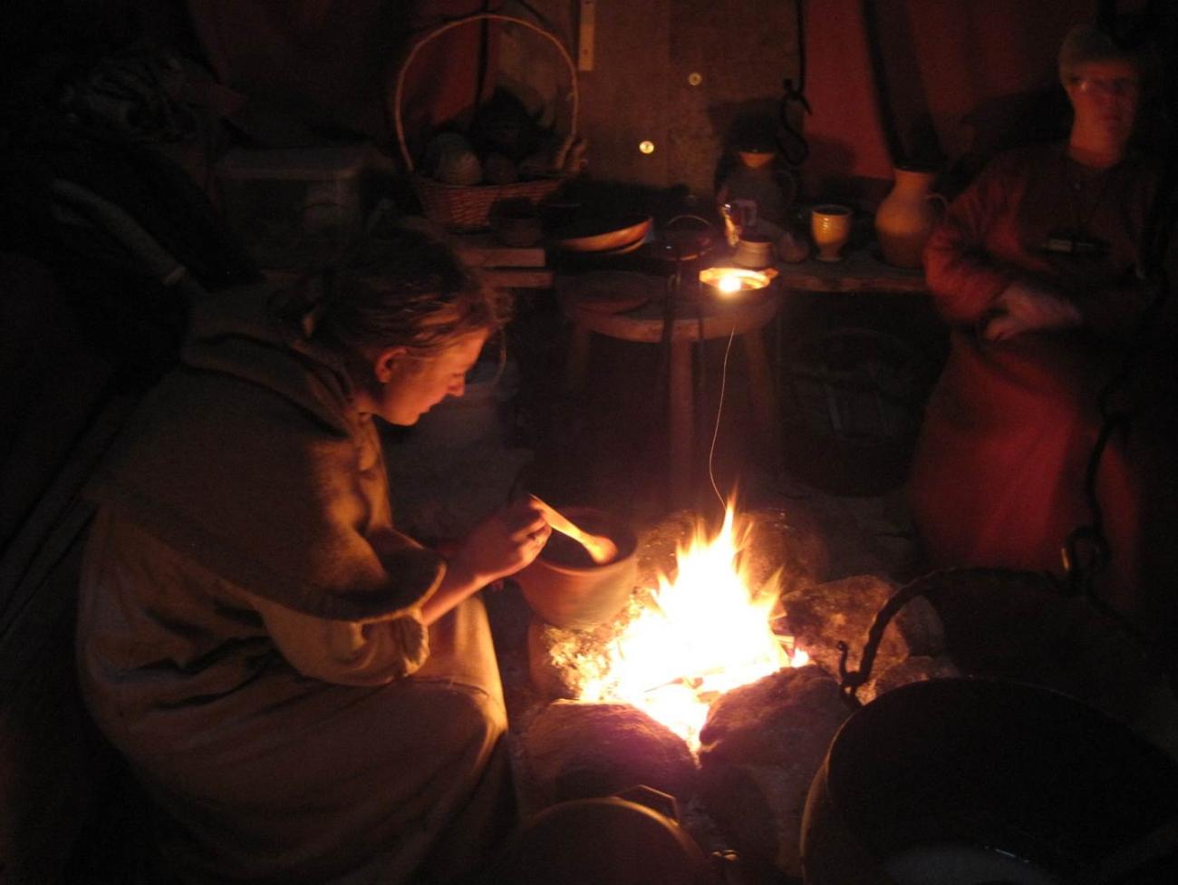In an attempt to achieve as realistic measurements and results as possible, the experiment was conducted under conditions as close to our knowledge of the Viking Age as possible. This meant that the furniture and the clothes were reconstructions of items that could have been in use in the time period. Cooking was done inside the house above the fire with ingredients that are known to have existed in the Viking Age. The use of Viking Age clothes and cooking inside the houses was done to give a more realistic temperature inside the houses.
