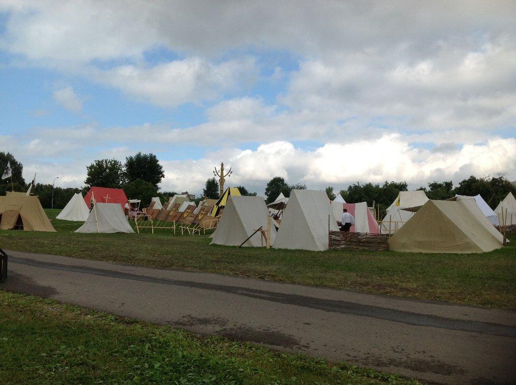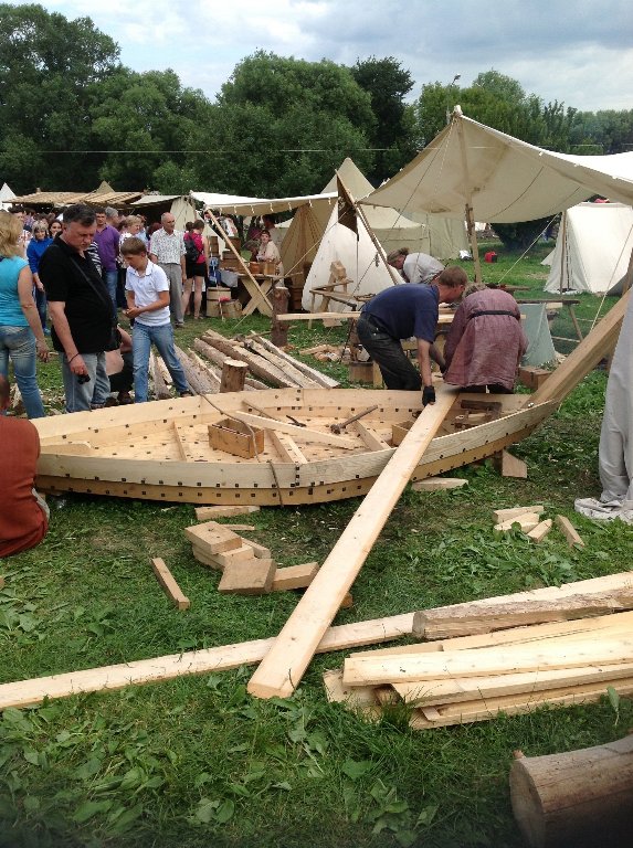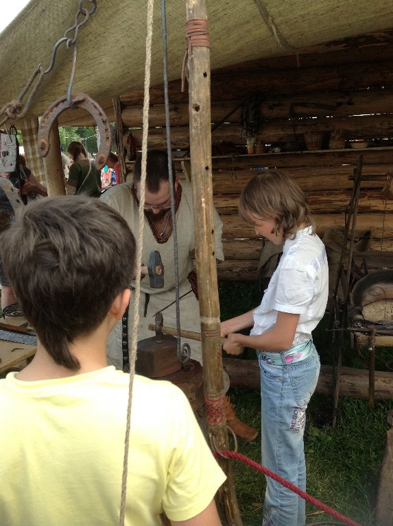 As an EXARC Board member, I attended the Times and Epochs Festival in Moscow from June 21-23, 2013 in the open-air museum Kolomenskoye Park. This year, an estimated 200,000 people attended the medieval themed festival where they were able to witness and interact with 2,000 re-enactors from 40 different countries demonstrating period and place correct blacksmithing, pottery, wood-carving, felting, jewelry making, boat building, and a variety of other skills. There were also jousting tournaments, and full combat demonstrations in the arena. Many of these re-enactors were highly skilled and the manner in which they interacted with the public, especially children, was truly impressive. In addition to watching artisans demonstrating their crafts, stations were set up for kids to try their own hand as felting, blacksmithing, pottery, wood-carving and archery.