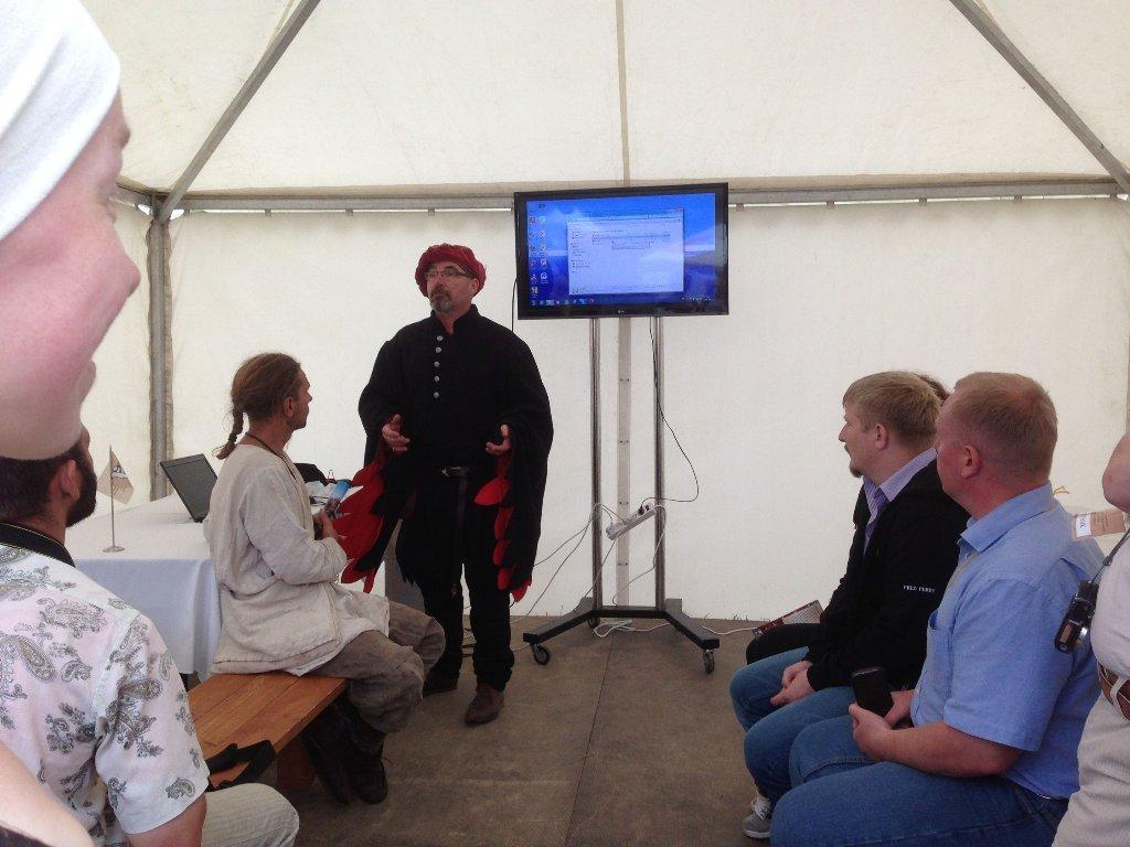 In this, the third year of the festival, the organizers decided to introduce meaningful dialogue on open-air museums to the agenda to address the needs of the growing number of open-air museums in Russia and the surrounding countries. This region currently faces many of the same obstacles that open-air museums in Europe and the United Stated have dealt with for years. The directors of many of these museums attended to provide information about their projects and to identify key challenges they face. For example, Roman Anoshkin attended as a representative of Gnezdovo. Roman is the director of an open-air museum set to begin construction on the grounds of an archaeological site with numerous burial mounds and, on the side of a ceramic vessel the earliest example of the Russian language. Leszek Struckinskly, from Poland, attended as a representative of Gnev Castle, a recently renovated, open-air museum and interpretive center offering a number of unique experiences for those interested in learning more about Poland’s past in very interactive ways. Dian Krishke represented the Prince riding school in Buckeburg, Germany where they specialize in researching, recreating, and teaching historically accurate riding. Bill Schindler of EXARC was invited to speak to the directors about how we help facilitate dialogue amongst the open-air and experimental archaeological community, provide a platform for networking, and serve as a repository of information.