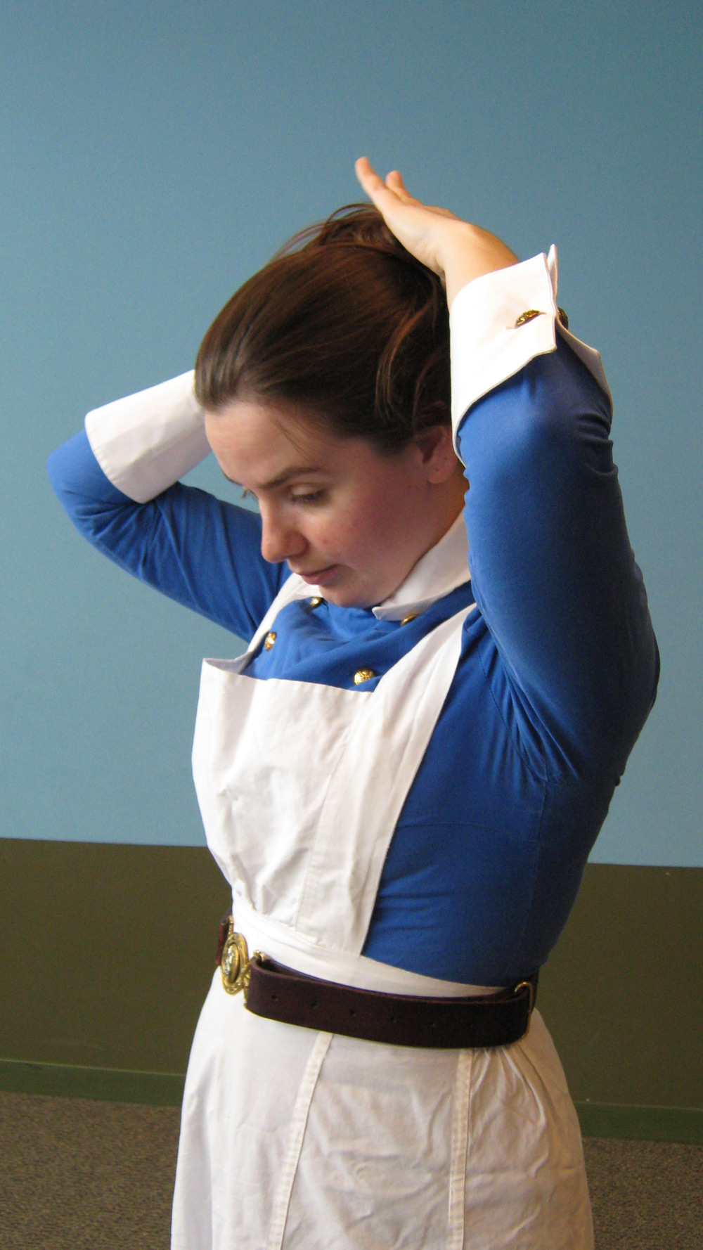 A first-person interpreter communicates using gestures and speech. Depending on the mandate of the museum or historic site, a first-person interpreter will adopt the accent and vocabulary appropriate to his or her historical character. Often, this is to increase the “historical verisimilitude of their environments [... For example, at] Plimoth [Plantation, a living history museum in Massachusetts, U.S.A.], interpreters study “personation biographs” written out in colonial English script […]” (Schechner, Studies 291). At the Canadian War Museum, I was given a script entitled “Nursing Sister in Doullens, France – Female” to play Madeleine. A first-person interpreter differs from other types of representations in that its object is a historical character, created based on an accumulation of facts. Sometimes the character is a known historical figure (for example Phineas Pratt at the Plimoth Plantation); however, the performances I have done as Madeleine are a representation of a fictional character based on an accumulation of data and historical research: she is a representation of the women who joined the Canadian Expeditionary Force during the First World War. At 24-years old, Madeleine left Montreal, Canada, to go and join the fight in France. In her time there, she made friends, she traveled to Paris and even London, she saved the life of a young man from Ontario (a neighboring province to her native province of Quebec) and she survived the bombing of her hospital in 1918. She also worked 12-hour shifts at the Canadian hospital in Doullens (30 km from the front line), lost patients, endured secondary-lung infections from mustard gas poisoning, and witnessed the death of nurses and doctors.