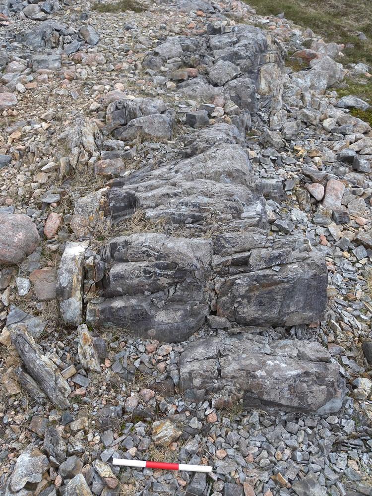 In Shetland the main material of choice was felsite, which presents as distinct grey/blue coloured dyke intrusions (See Figure 1), contrasting sharply against the typically red granite bedrock. The majority of dykes and the associated quarries are found across the North Roe peninsula on mainland Shetland, range in width from approximately 0.5 metres to 4 metres and are oriented roughly north/south. The majority of evidence for felsite tool production comes from the quarry sites themselves, whereas potential indications of their function come from a small number of caches/hoard finds and settlement excavations. While material from the island has found its way into various museum collections outside Shetland, there is no evidence for any movement of materials off the islands during the Neolithic, contrasting sharply to neighbouring Orkney.