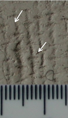 This could only be clearly seen in the fine clay during this experiment and therefore may not be visible in the archaeological record, but it allows another indicator for woollen yarns compared to flax yarns.