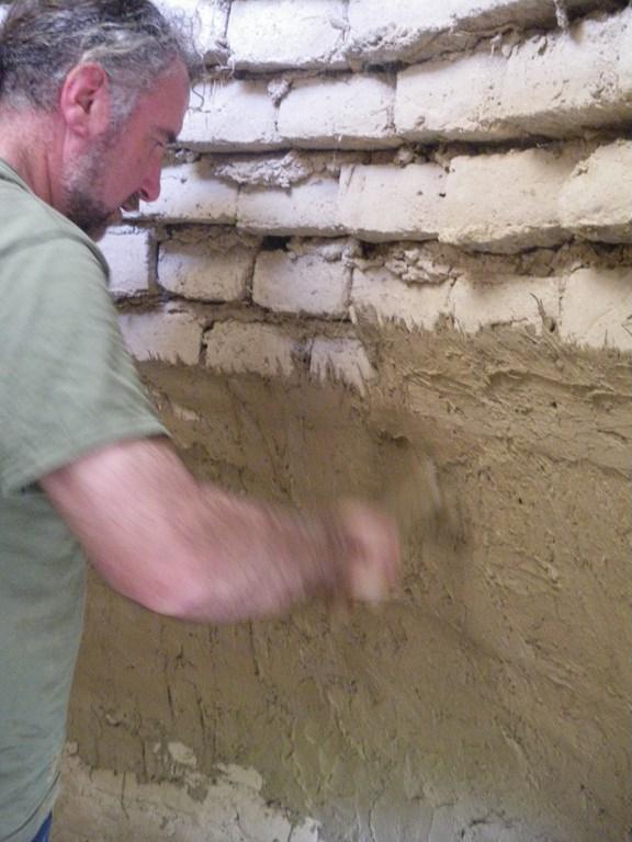 Before the initial firing (without pottery), and in order to ensure the general stability to the structure, in particular the grate, a lining was applied to the interior of the firing chamber by moistening the bricks and plastering with a thin layer of clay (See Figure 15). This was a difficult task, especially in the upper part of the chamber where the corbelling was more pronounced. Subsequently the small cracks provoked by the drying of this clay were sealed and smoothed over with a wet brush. This lining eventually cracked in some areas due to lack of moisture or because it was too thick.