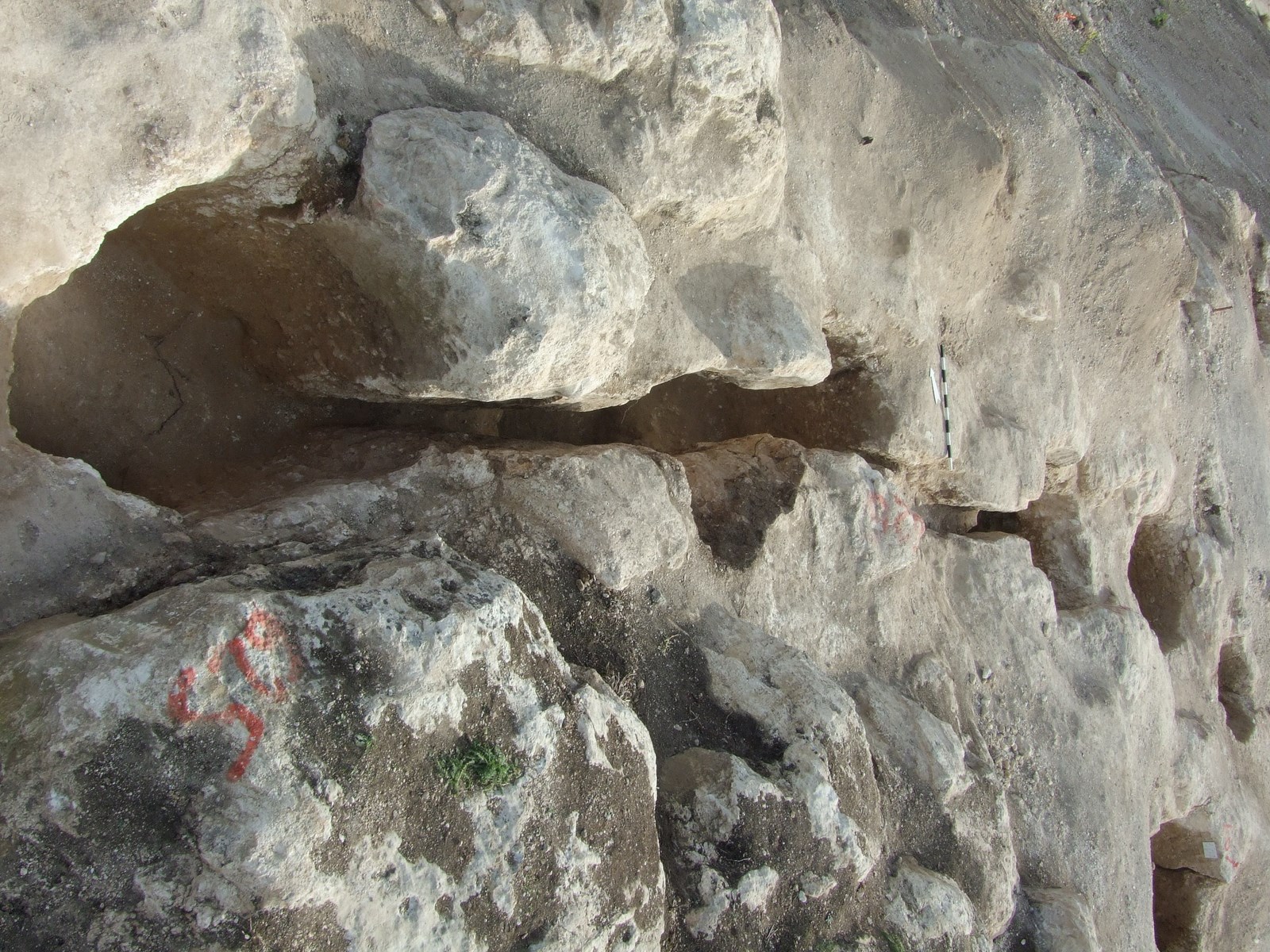 The inhabitants of the settlement (not discussed in the current paper) on the same descending rock-shelf adjusted it to their needs. They filled the gaps and cut through the rock in order to create straight surfaces above which they could situate their walls. In general, it seems that the settlement was established on lower ground compared to the cemetery.