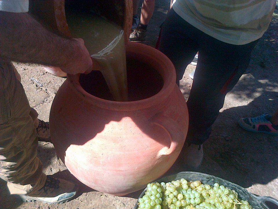 By mid-October we took some samples (as much from the trampled grape as from the pressed) from the jars and amphorae stored and we could check that we had made wine, very strong but ‘drinkable’ after all.