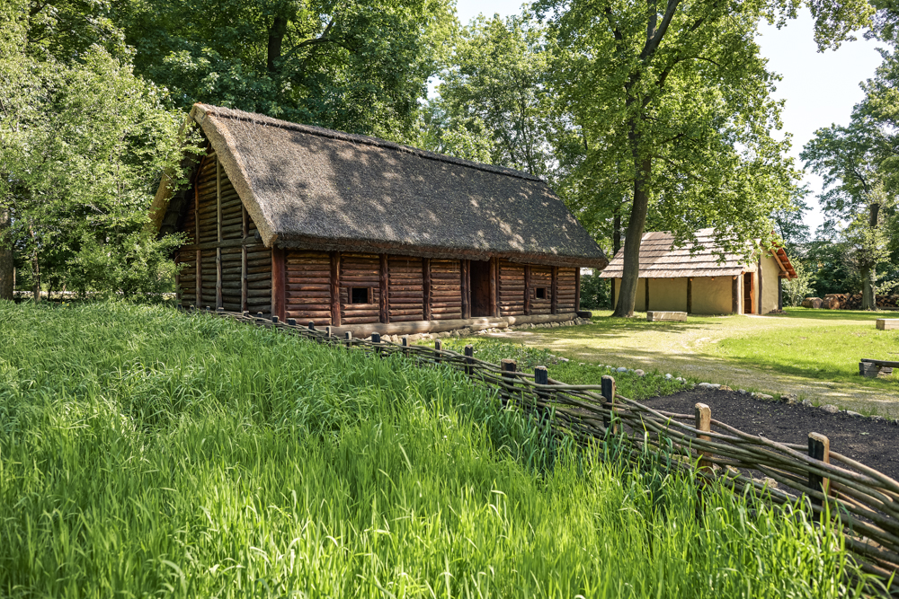As a result from 1970 not only were the prehistoric collection items presented in the palace building, but an area of almost two hectares was designed for reconstructions of prehistoric huts and houses. Over the decades, these former palace grounds have developed into an indispensable part of any exhibition visit to the Lower Austrian museum of prehistory Urgeschichtemuseum Niederösterreich. The historical core areas developed more and more and needed to be displayed at the open-air site:a circular path heads past reproductions of residential, farming and trade buildings from the Palaeolithic Age up to the Celts, making it possible to visualise the lifestyles and living conditions in earlier eras of Central Europe and also enabling visitors to understand and get a feeling - in the truest sense - of how people lived back then.