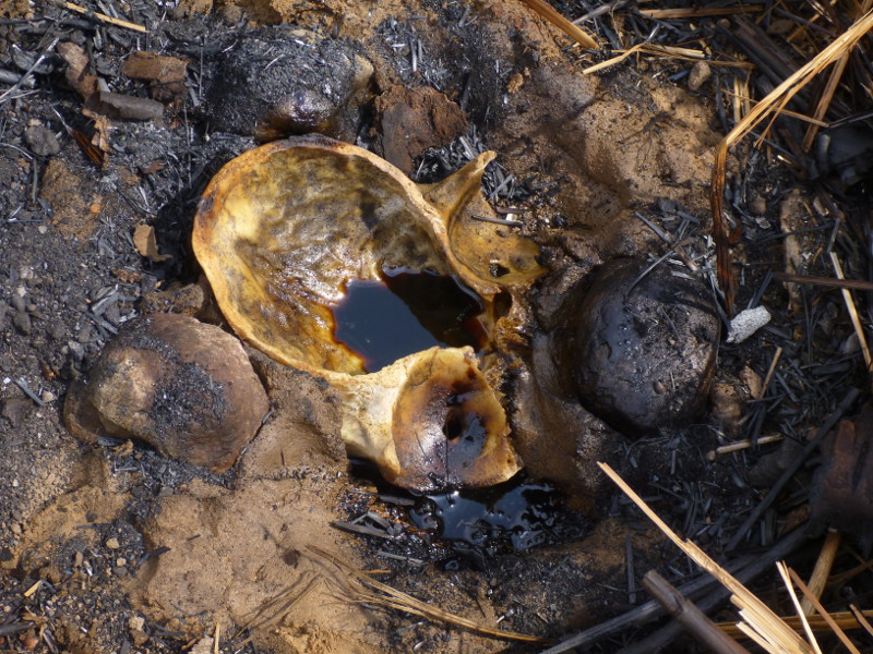 - Remains of this distillation method will leave no more traces in the ground than a ‘normal’ cooking fire after several years, as no real fine clay is needed for any of this. The sand / clay / mud mix used to cover the bottom and sides of the shallow pit is very brittle after firing and will disintegrate within a short time.