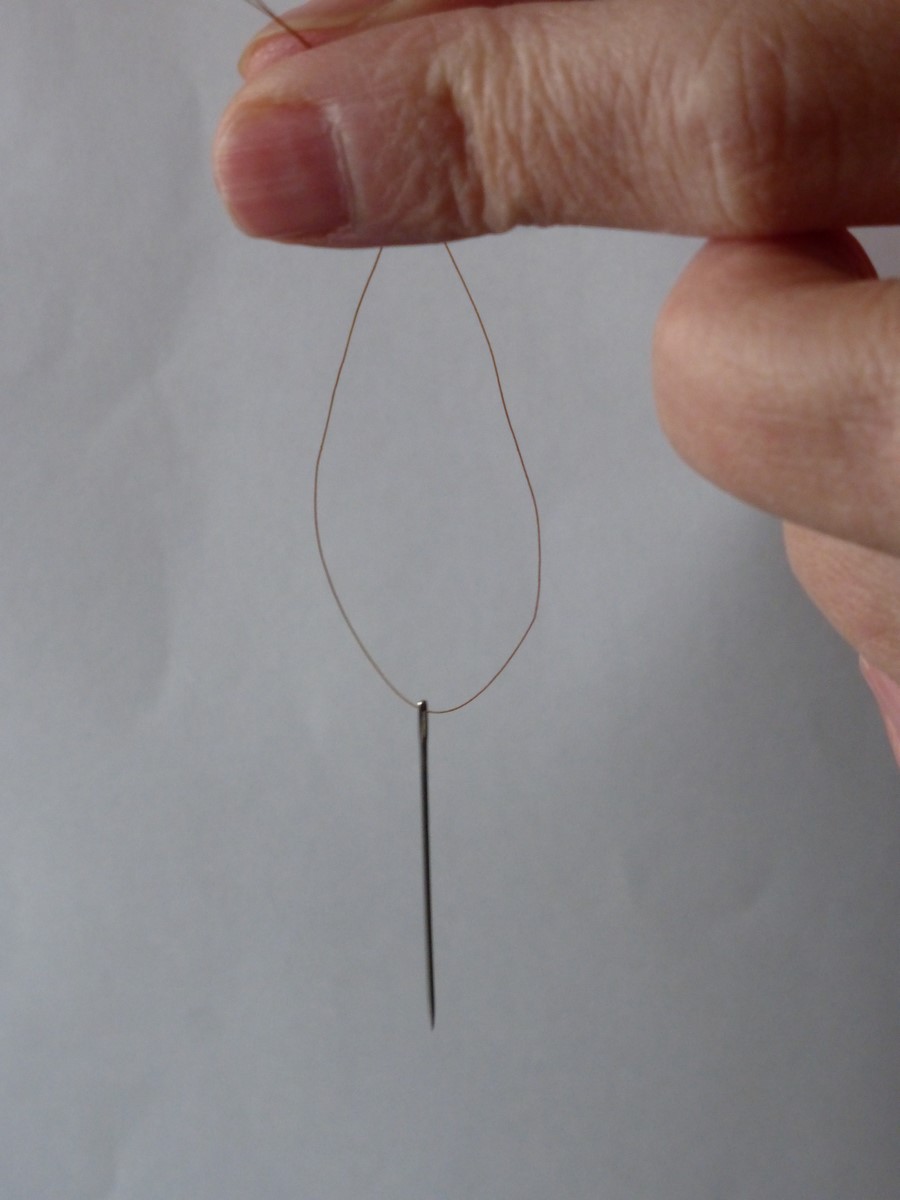 After much consideration, I decided that a metal needle could be used as there is no reason to believe that the needle workers responsible for the workmanship of the shabraks did not have access to bronzesmiths and consequently bronze needles (Hodges 1971, 233).