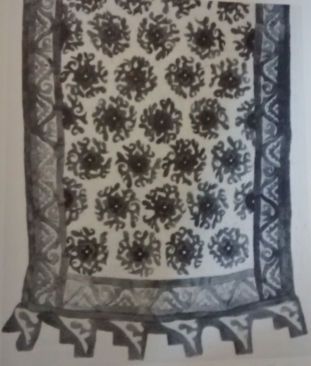 My work has been inspired by some of the most remarkable textile finds - those in the Pazyryk kurgans (burial mounds) - specifically the felt shabraks (horse blankets). The detailed, intricate designs of these items are achieved by appliquéing felt on felt (sometimes leather is used) in a manner that adds both decoration and strength (See Figure 1) and is still used among the steppe-land nomads (Barber 1991, 220).