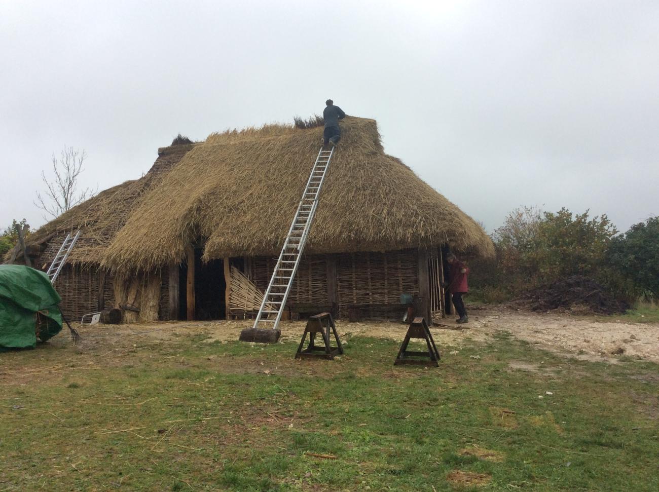 This year we have been constructing a Saxon house based on evidence from Chalton, the village closest to the farm. The evidence is good and clear, showing post holes which would have held the door frame. This space was not very wide at 800 mm. The Equality Act 2010 (EA) and the Disability Discrimination Acts (DDA) of 1995 to 2005 give disabled people important rights of access to everyday services. We have followed government advice that doorways should be a minimum of 813 mm wide to allow access for wheelchairs. So, in order to accommodate everyone we have widened the doorway slightly to conform to government guidelines, but this has altered the resulting structure too little to be noticeable. We feel that making that small change is essential to ensure all our visitors can enjoy a good experience.