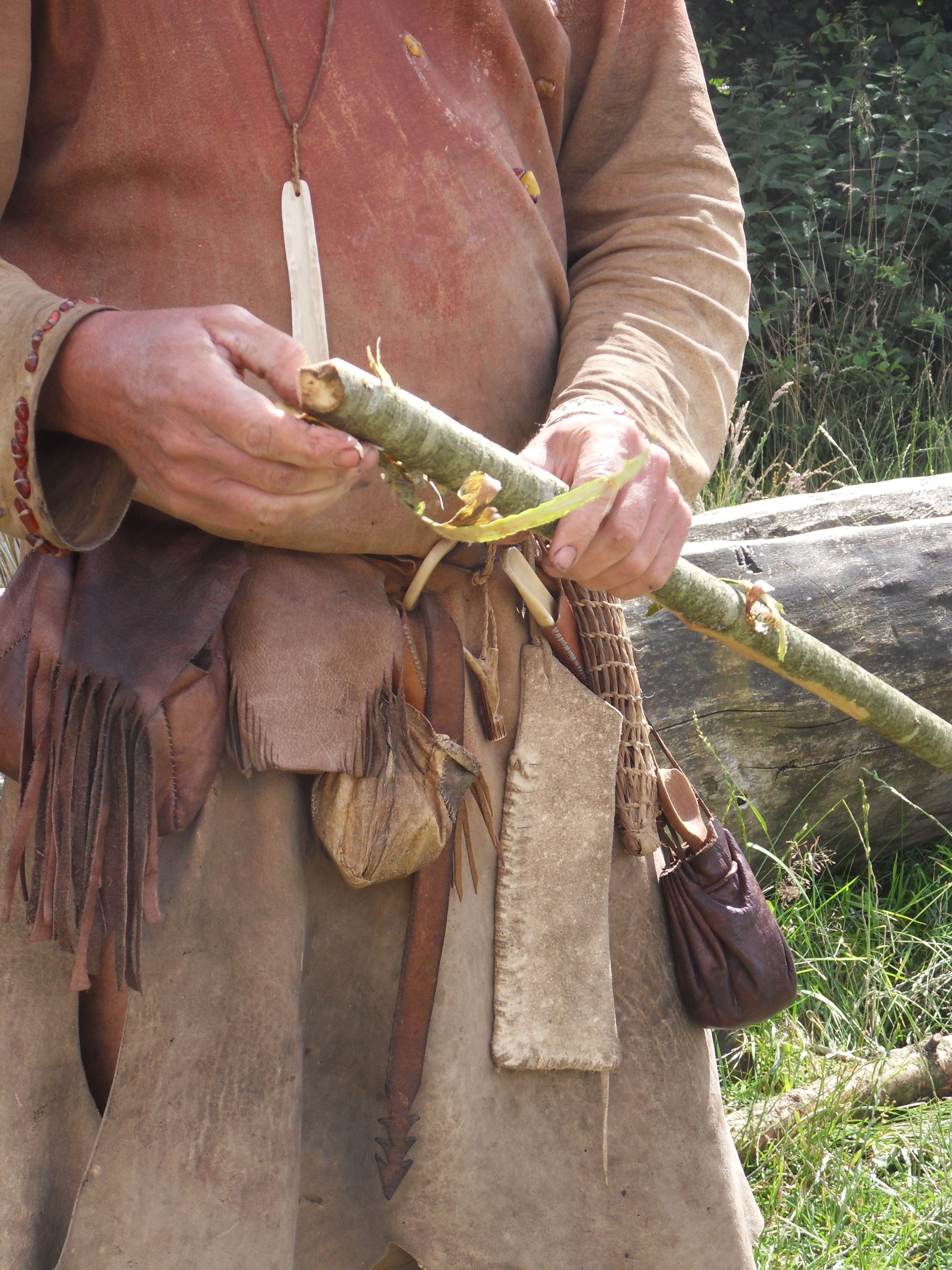 During the course of the experiment a number of smaller experiments and reconstructions took place in order to cast some light on specific aspects of Mesolithic life. All the tools and materials used during the experiment were accurate reconstructions based upon excavated archaeological material and one of the major aspects of the experiment was to test the effectiveness of these tools and whether our modern assumptions about their use were practical. To this end the group took part in a large number of activities that would have played a fundamental role in Mesolithic life. These included food harvesting (fishing, hunting and foraging), food preparation (skinning, smoking and cooking), lodging (creation of shelters and other buildings), boat building (rawhide and log canoe construction), producing cordage and adhesives (making birch bark tar and rope from grasses et cetera), making clothing (sleeping gear and other clothes from fur, leather and textiles), tanning (making leather from fish and cow hides), and finally hygiene (bathing and waste disposal). These activities constituted the core of the experiment and required extensive teamwork, management and cooperation.