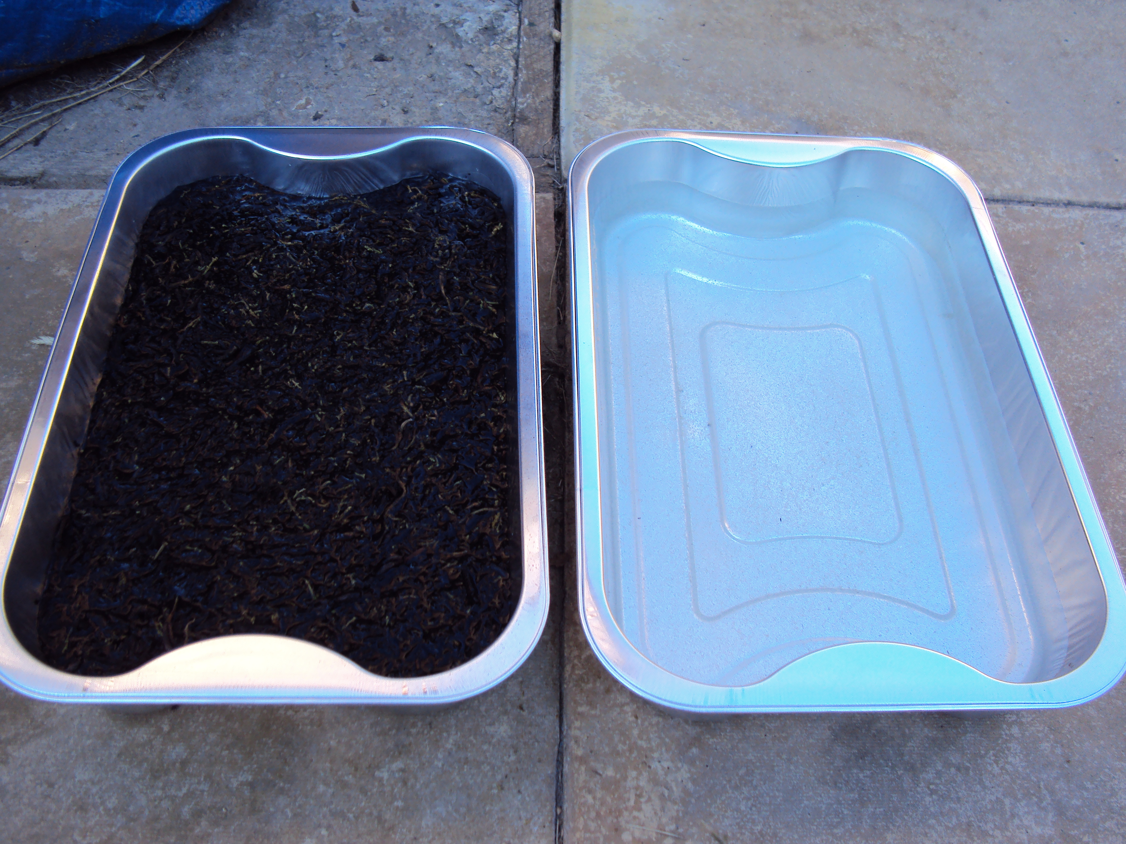 To clarify these matters, the experiment was repeated, this time outdoors in July 2015 using higher quantities of ash and seawater. The method was identical to that for the first experiment, except that the conditions of the second experiment were adapted to better mimic the open conditions of the Iron Age and Roman salters. Raw samphire, this time 450 g, was dried outdoors for three days (in temperatures reaching circa 21ÂşC), by which time the sprigs had browned and reduced in weight to 76 g (See Figures 3 and 4). The samphire was burnt to ash, which reduced the weight further to 38 g (See Figures 5 and 6). The ash was placed in a foil tray and mixed with 1000 ml of seawater at 35 ppt. A second tray contained 1000 ml seawater only. Both trays stood outside during the day (during a heat wave, with temperatures reaching circa 35ÂşC) and indoors during the night (See Figure 7). After three days, the salinity of the brine in the tray containing seawater alone reached 60 ppt, an increase of 71% (See Figure 8). The salinity of the brine from the ash-steeped seawater reached 105 ppt, an increase of 200%. (This stage of the experiment could not continue to the six days of the first experiment, because the salinity of the ash-steeped brine had by three days exceeded the scale of the salinity meter.) The total volume of the ash-steeped brine was 400ml; that for the seawater alone was 550 ml, but only 400 ml of this was taken to be evaporated. The brine from both trays was then evaporated together on a gas-fired barbecue (See Figure 9). After 1.5 hours, the seawater brine had fully evaporated, leaving 44 g of crystallised salt. After 2 hours 10 minutes, the ash-steeped brine had evaporated, resulting in 70 ml of salt, although the salt differed in appearance, being black and finer (See Figure 10). After six hours, when the salt from both brines had dried completely, the respective weights were 36 g and 64 g.