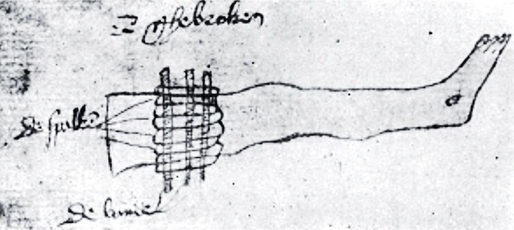 Explanation: The state of a broken bone was difficult to determine from the outside, especially if it was a complicated (multiple) fracture. If there was any doubt about the source of the pain, care had to be taken in the Middle Ages before proceeding with treatment of a fracture (See Figure 6).