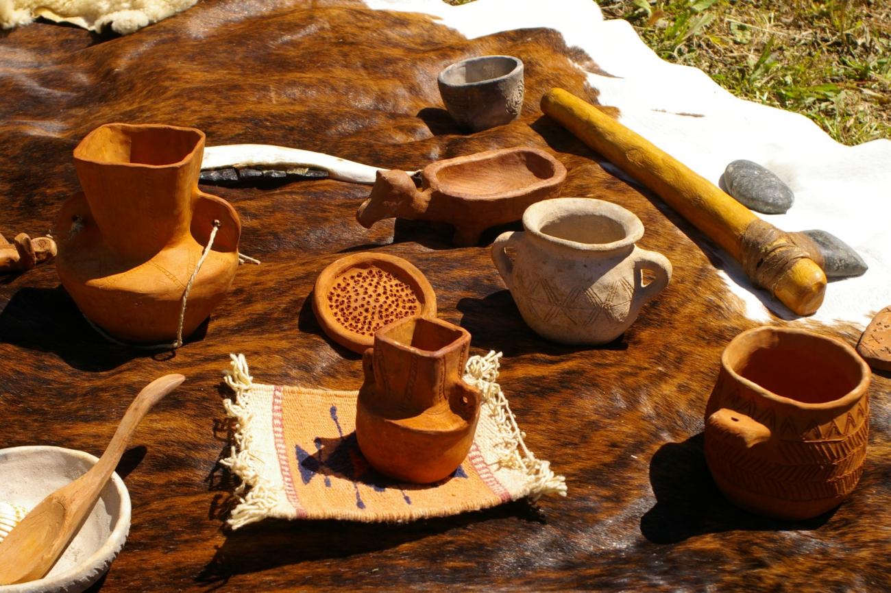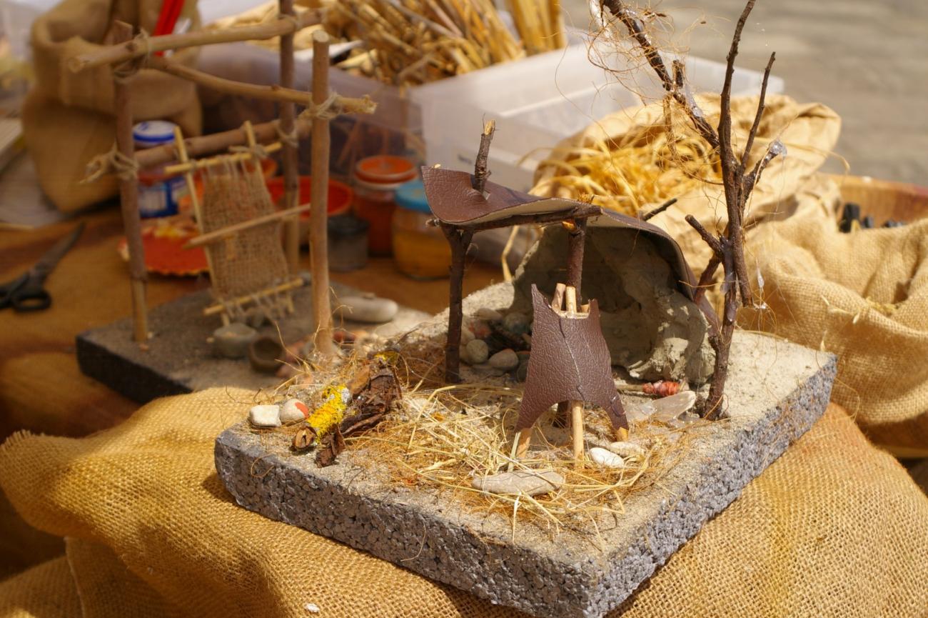The activities provided were painting on stone, the making of Neolithic beakers, Neolithic archery, launch with atlatl, lighting a fire with flint, the grinding of grain on quern stones and weaving on a vertical frame.