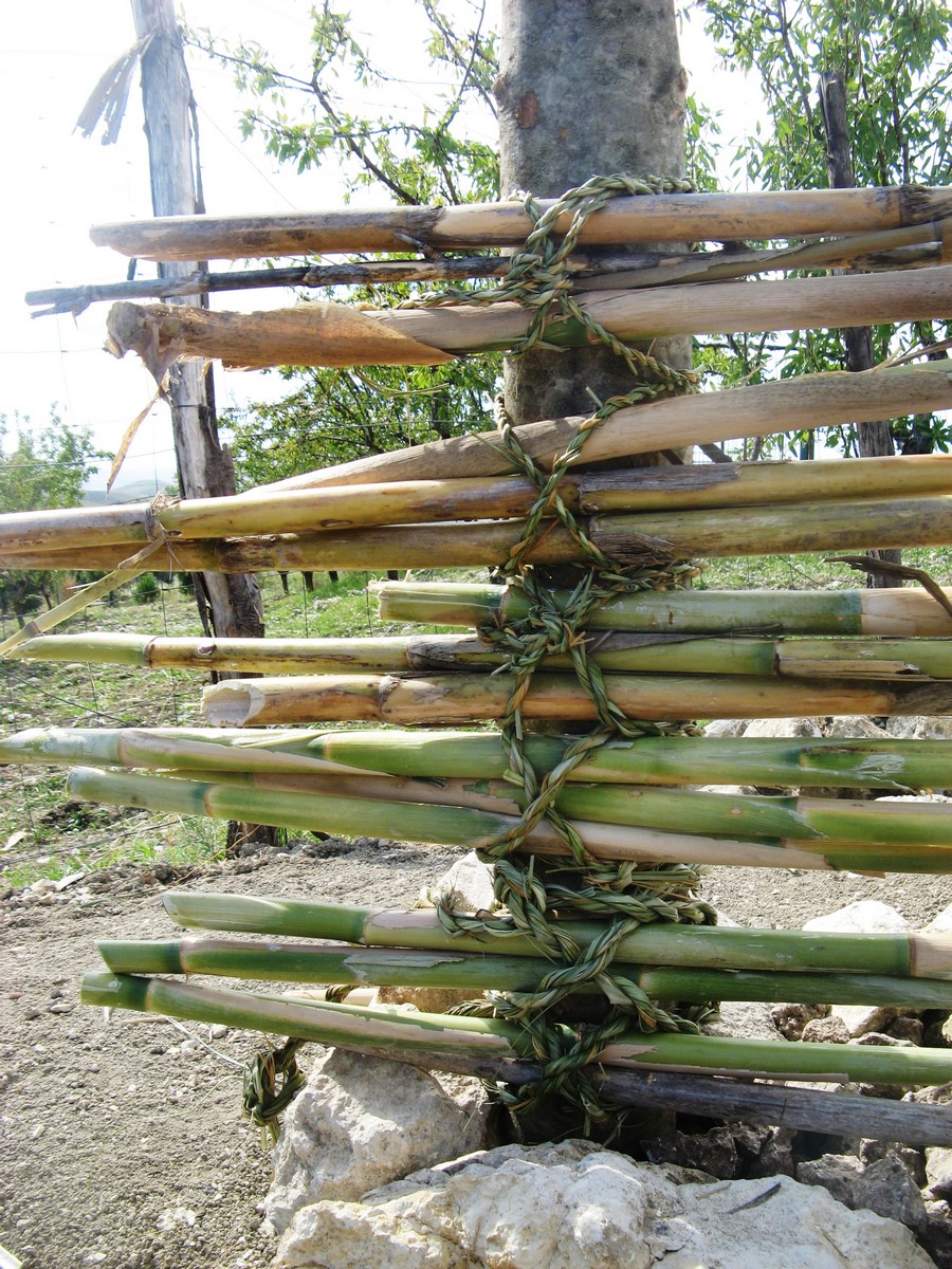 Botanical studies suggest the presence in the past of certain plant species suitable for the construction, and these should always be taken in account, especially if archaeobotanical data are available. Furthermore, following the seasons is of extreme importance when gathering the plants. Harvesting them at the right point in the year makes them more durable in the long run. This is definitely the fundamental benefit of ‘traditional’ knowledge passed on from generation to generation. The experience acquired during the project, however, had an important role as well. For example, blackberry branches used must be very long, but both the too young and tender ones, and the biggest and oldest ones, are unfit to ‘sew’ the roof. In the summer temperatures of the area, branches of blackberries dried for a few hours after the collection broke easily. Holding them to soak for a while before use made them more flexible.
