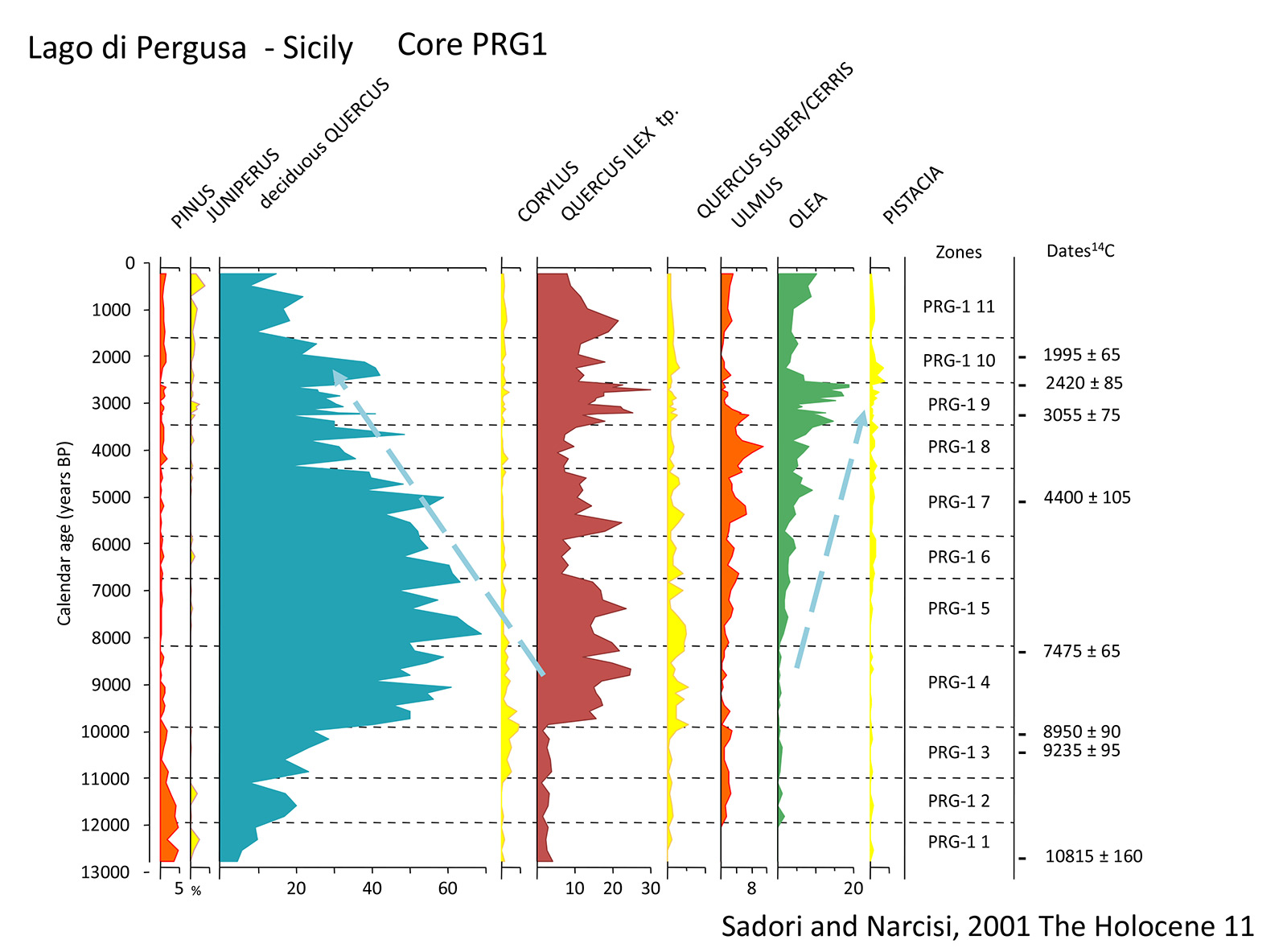 SADORI, L., ZANCHETTA, G. and Giardini M., 2008: Last Glacial to Holocene palaeoenvironmental evolution at Lago di Pergusa (Sicily, Southern Italy) as inferred by pollen, microcharcoal, and stable isotopes, Quaternary International (181), pp. 4–14.