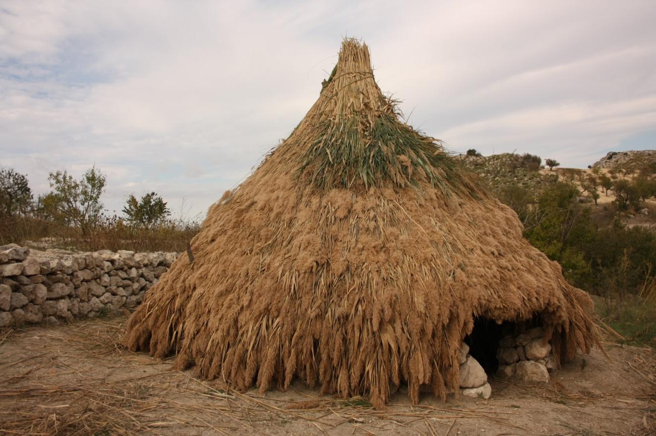 Ethnographic research on vernacular architecture in Sicily, mainly the study of pagliari, were helpful in developing the reconstruction hypothesis for the elevation of the hut and in choosing the building materials (Caruso, Speciale in press). Pagliari (or pagghiari) are shepherd’s shelters that could be occupied seasonally or all year long. Typical features are the design, usually square or rectangular but also round, dry stone wall construction, and the gabled or conical thatched roof (See Figure 3).