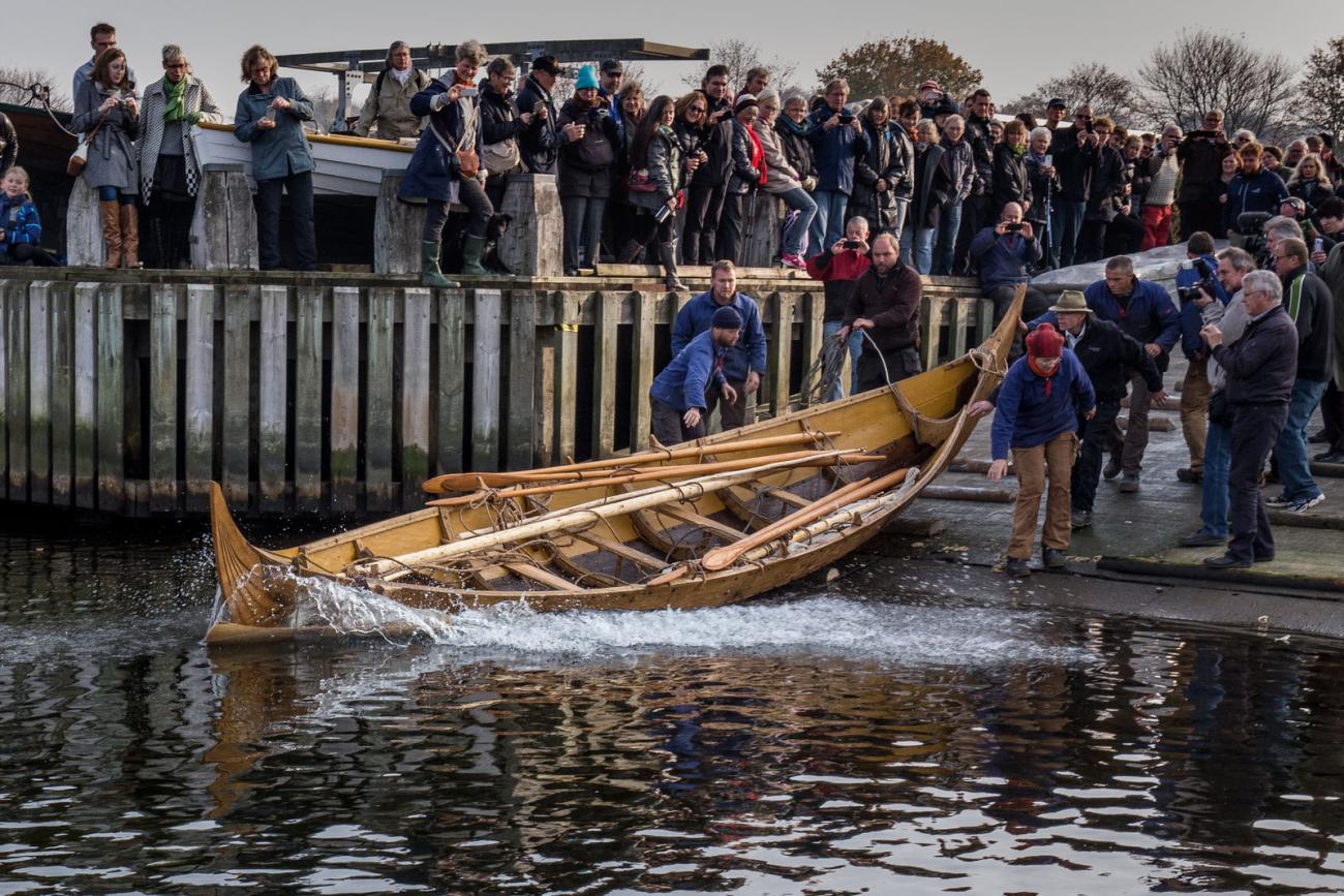 The Gislinge Boat – or Gisle, as the boat was named – was launched on the 31st October 2015 and the event marked the end of the first phase of the project. The hectic pace of the weeks leading up to the launch was replaced by a calmer period of reflection as the process of test-sailing began. It takes time and skill to 'sail the boat in', a complex process where the interplay between each individual element of the boat and the impact they have on how the boat performs becomes apparent. Many adjustments must be made as the boat builders get to know the boat and how it performs, and this vital part of the experimental archaeological process will continue with the coming sailing season (See Figure 10).