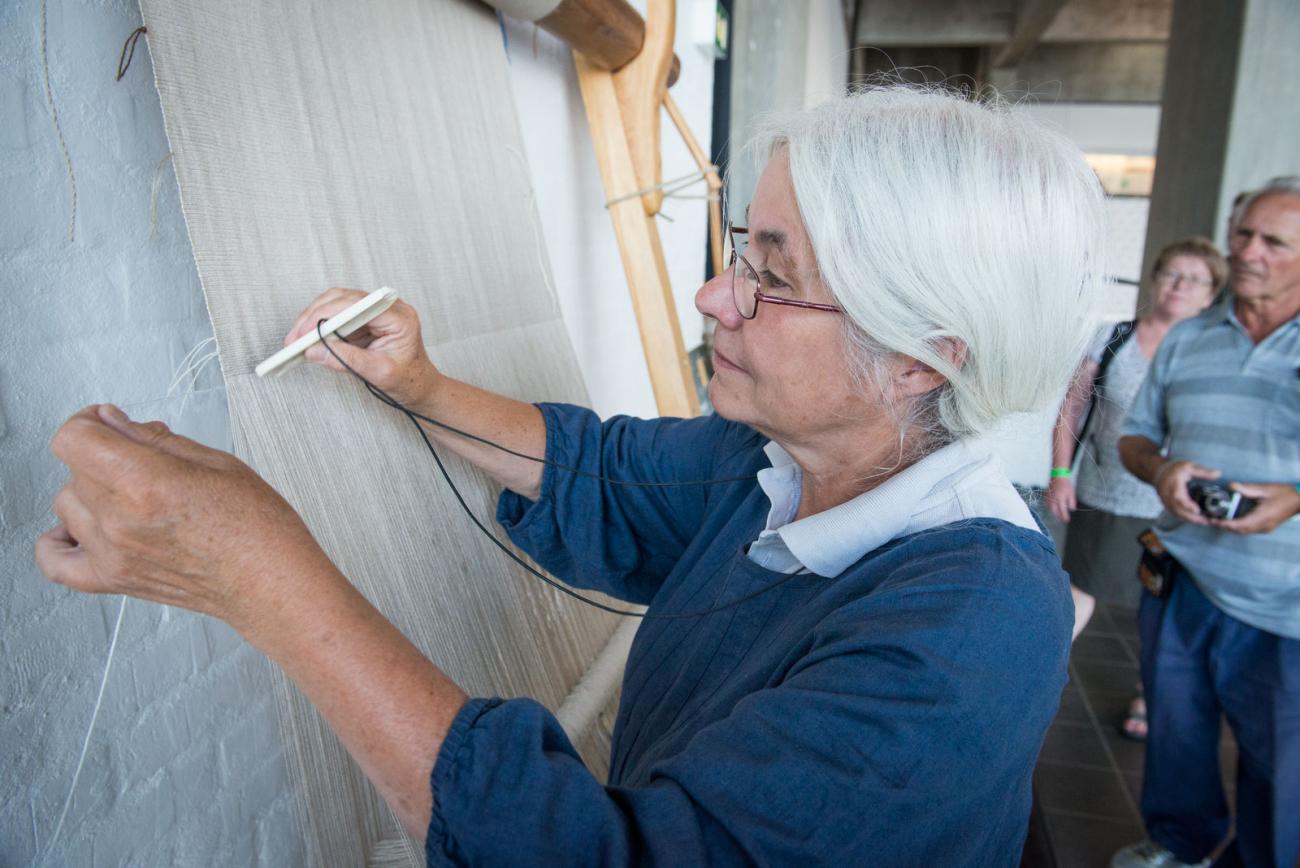 While Anna's panel was completed at the Museum over the summer, problems sourcing adequate amounts of flax to complete the panels at IBOS meant a tough decision had to be made: should they wait for IBOS to complete the remaining panels and leave the boat without a sail for the rest of the sailing season, or should they order machine-woven linen sailcloth, so that test-sailing of the boat could begin in 2015? In the end, the decision was made to purchase modern sailcloth to make a pilot rig ready for the launch in October, allowing us to begin test-sailing straight away while also giving us the chance to fine-tune the design of the sail. The hand woven sailcloth would then be finished over the autumn and a fully handmade sail produced for the 2016 sailing season.