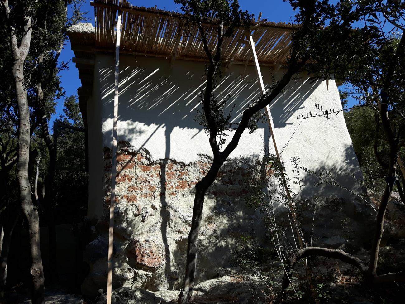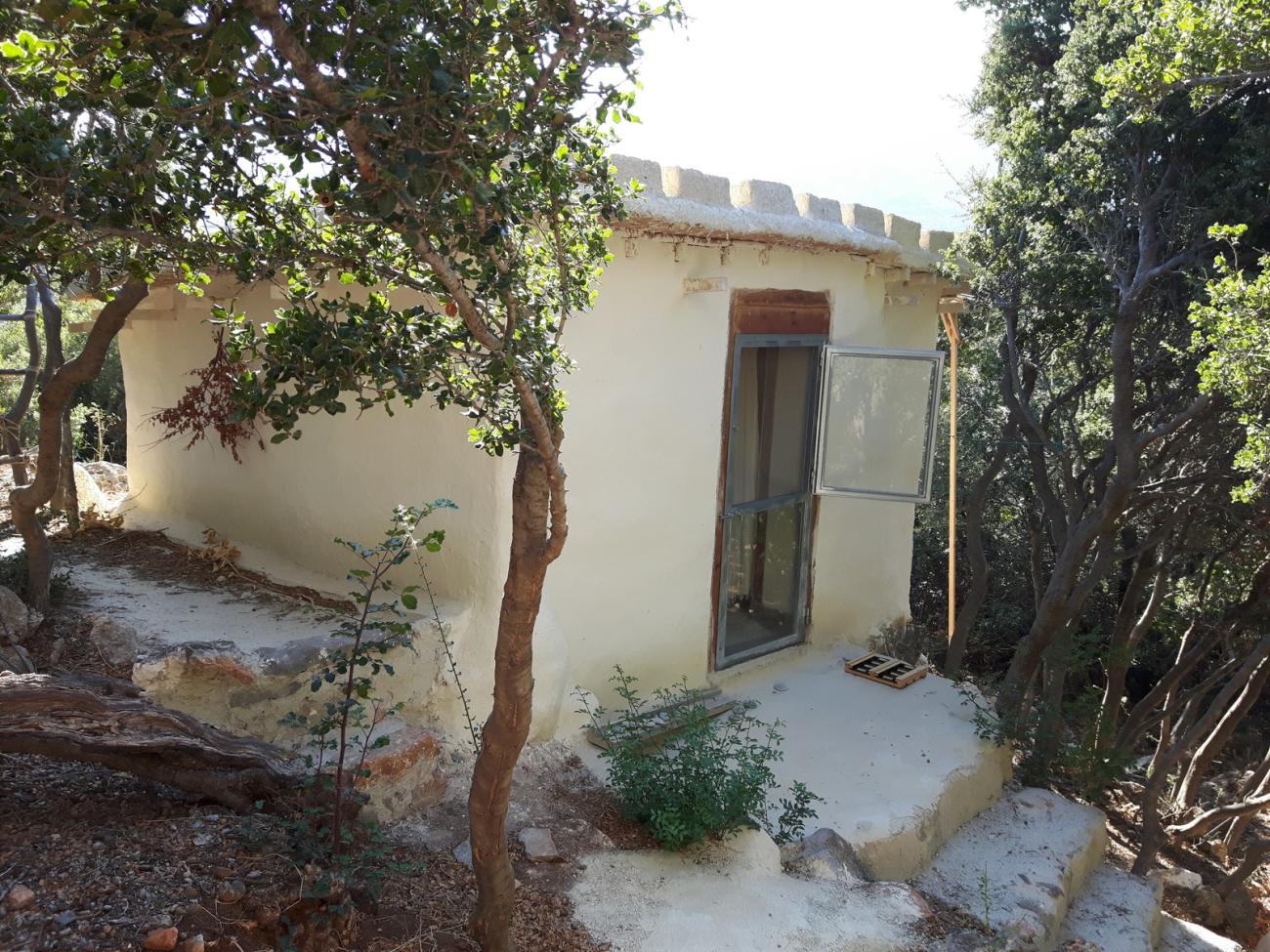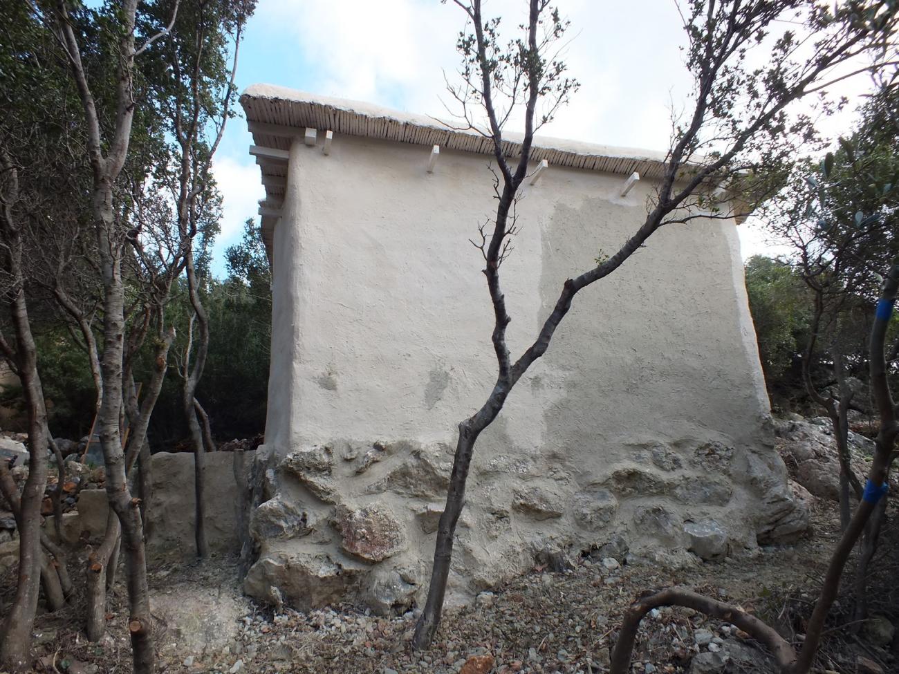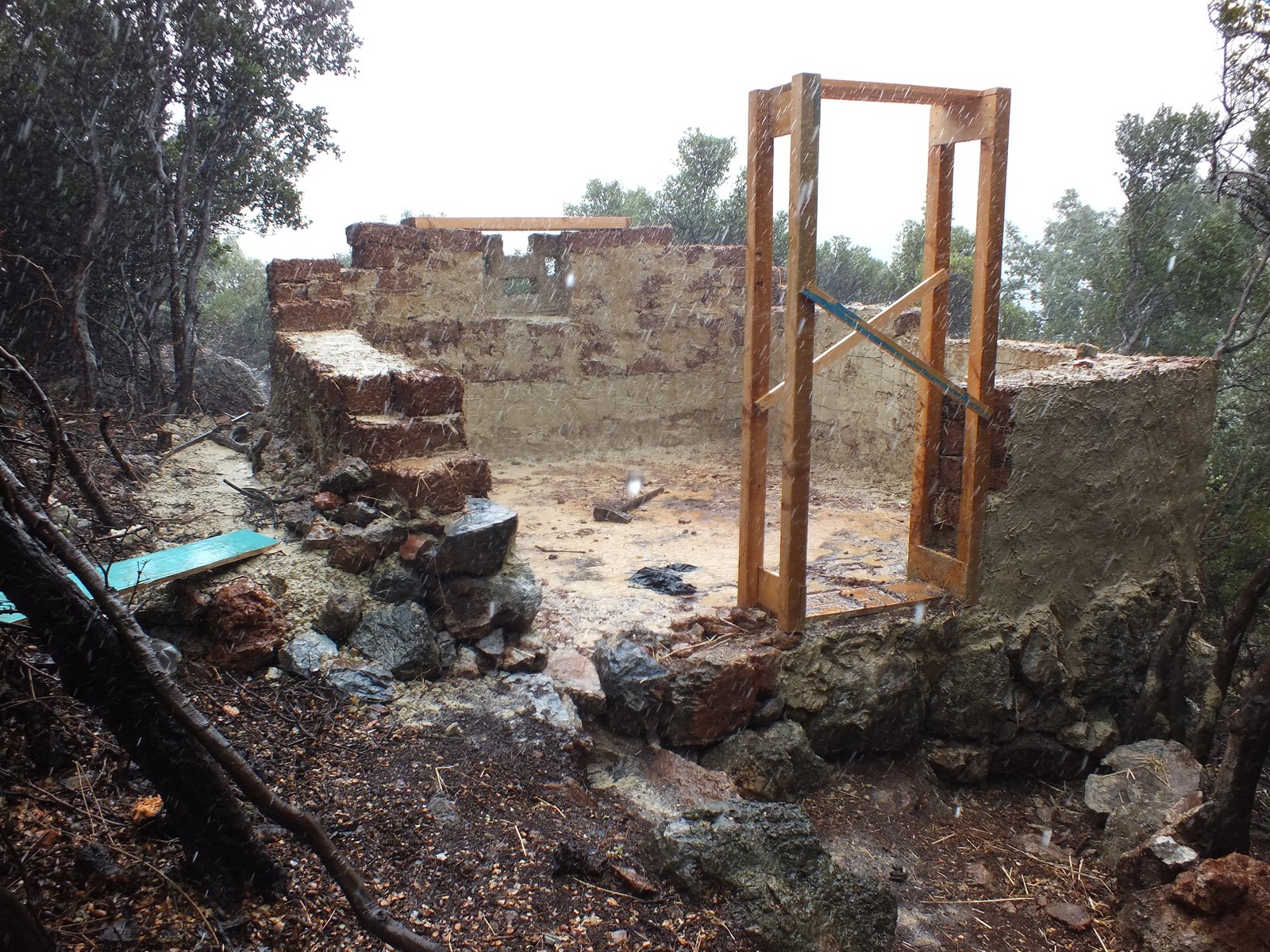 While experimenting with the available computer reconstruction possibilities, I realized that even the most sophisticated software would leave too many questions unanswered. As a result, I decided to attempt to reconstruct a small house in a corner of my own (partly covered in wilderness) Cretan garden, some7 km from (and ca. 600m and more below) the mountain originals.