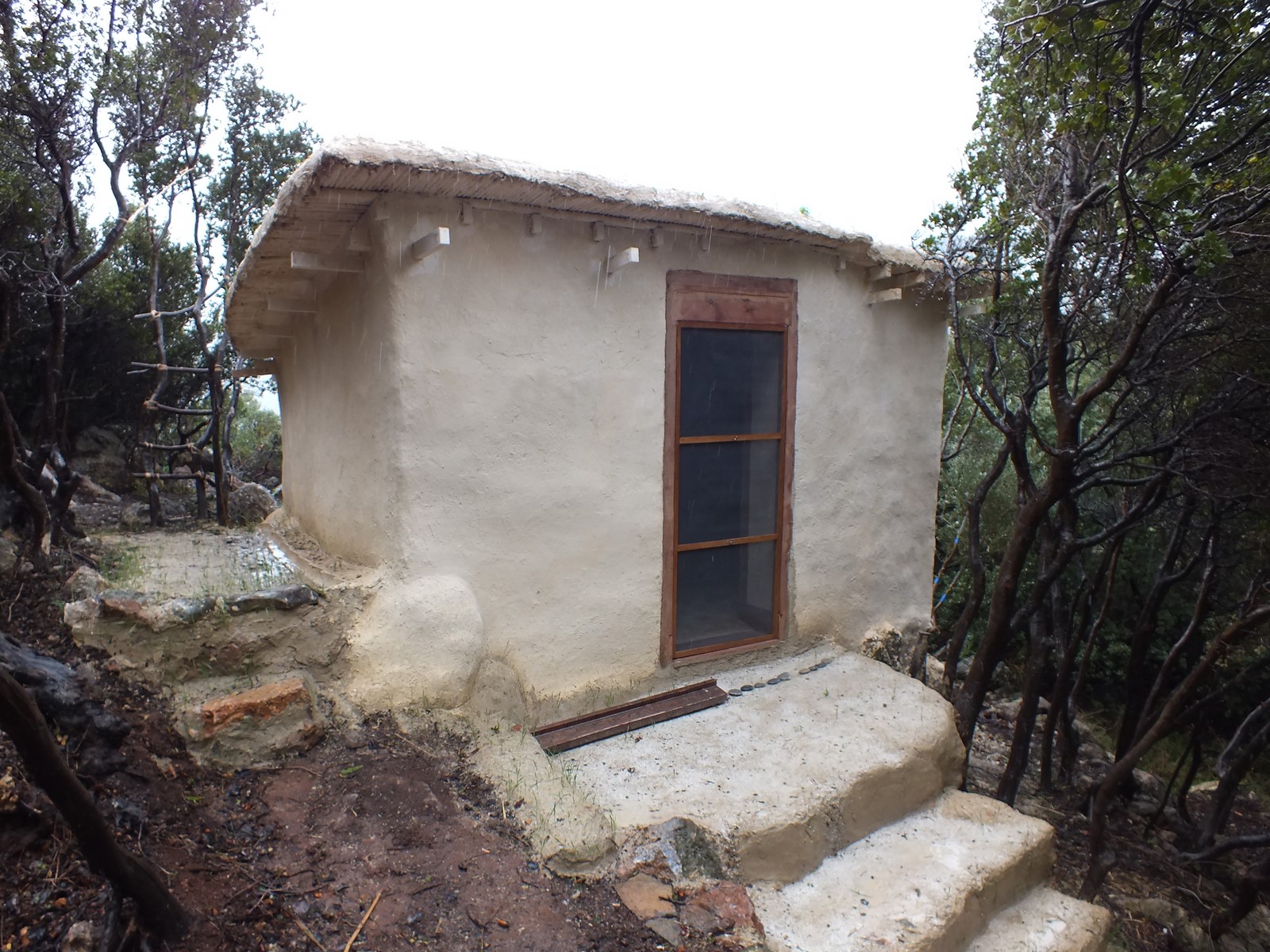 Within less than a month all the brick walls were completed and only the uppermost layers needed some extra work due to the incline we wanted to give the roof. I realized that mudbrick-construction without a timber frame is a much faster kind of building than I had expected, despite having additionally produced our own building material pin tandum with the building process (all in all over 900 mudbricks).