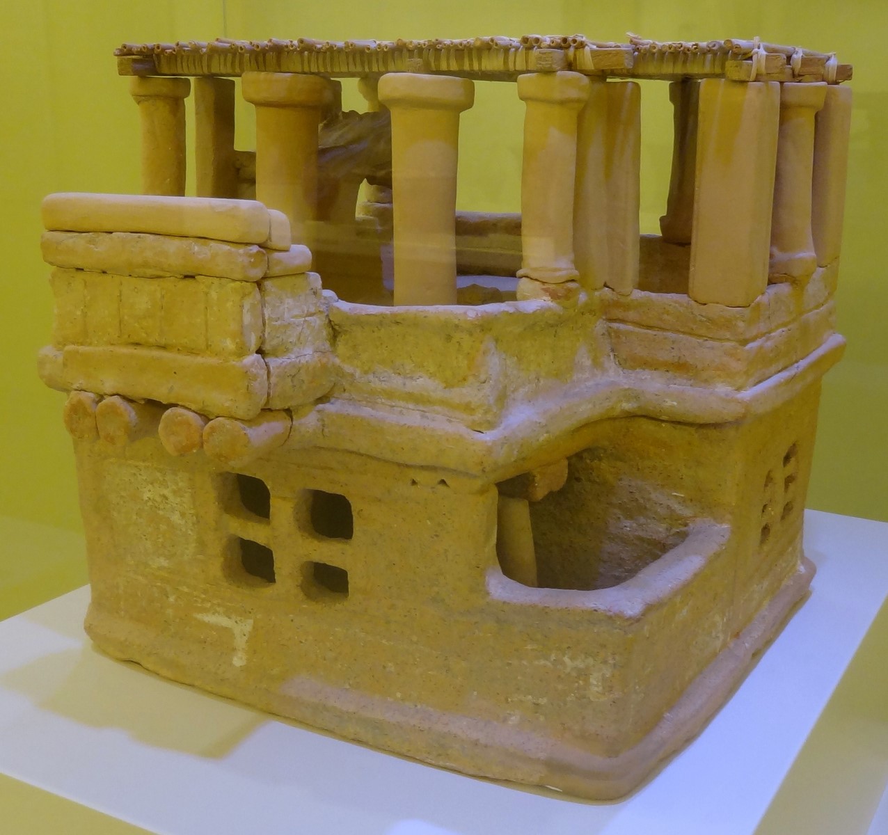 Although we know of the mudbricks existence, the possible appearance of the houses has been informed by Late Minoan art such as the 'town mosaic' from Knossos and the small clay model house from Archanes (See Figure 3).