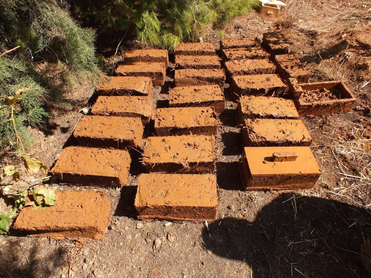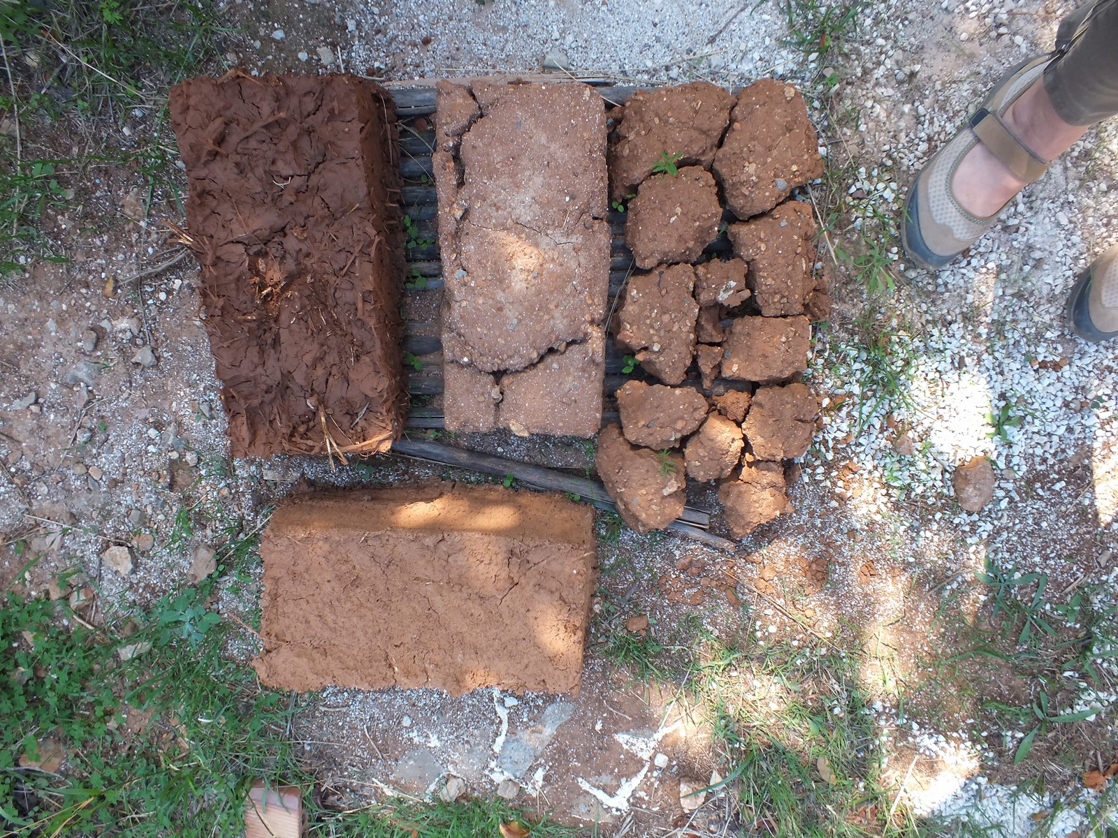 - Mud with locally sourced pine needles: These produced a stable brick which remained damp and soft after two weeks; the needles had minimal filling ability, so the brick was comparatively heavy.