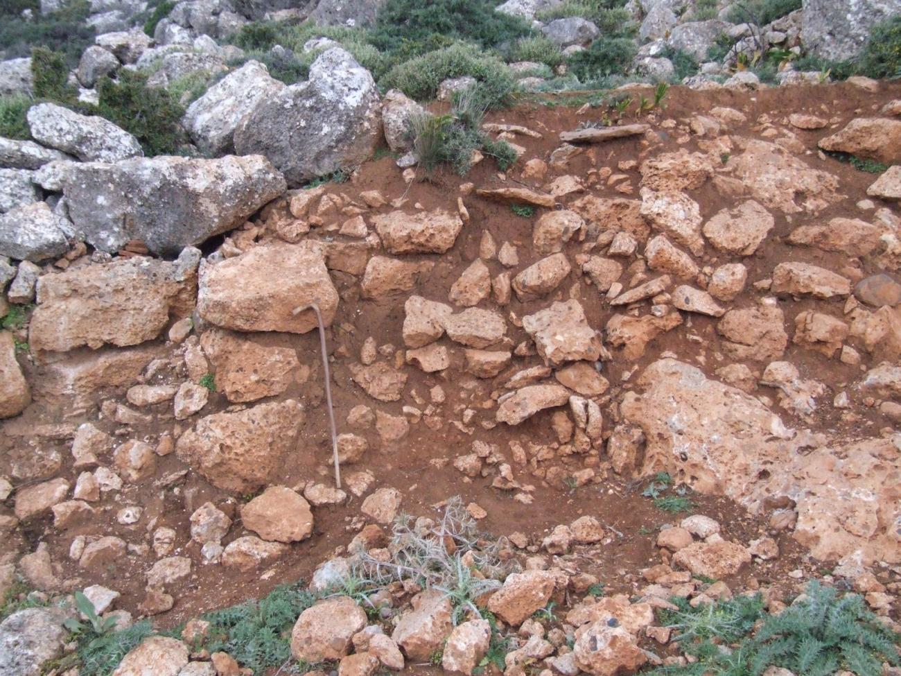 Having erected the frame of the foundation as much as possible in the Middle Minoan way (Beckmann 2012a, chapter 2, Beckmann 2012b:36-37c), we filled this with smaller stones. Some mountain houses may have used the space inside the foundation as a cellar vel sim., while others were filled to create a level base for the upper structures (ibid., and Figure 10).