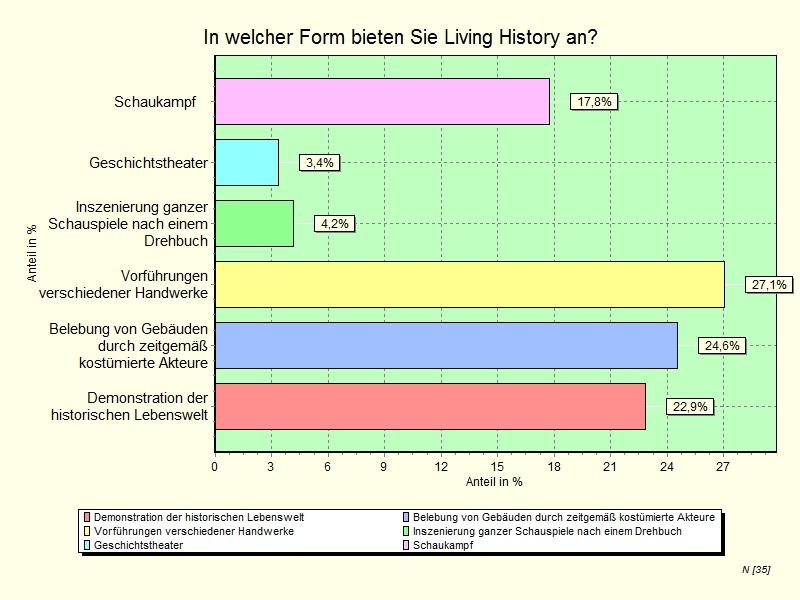The study has shown conclusively that Living History is a topical issue and is a method that is widely used in German archaeological open-air museums. At the same time there is also the need to act with respect to quality control to ensure that intangible cultural heritage is experienced through Living History in a professional manner, thus protecting the practice. The survey serves to investigate the point at which archaeological open-air museums in Germany are with regard to Living History.