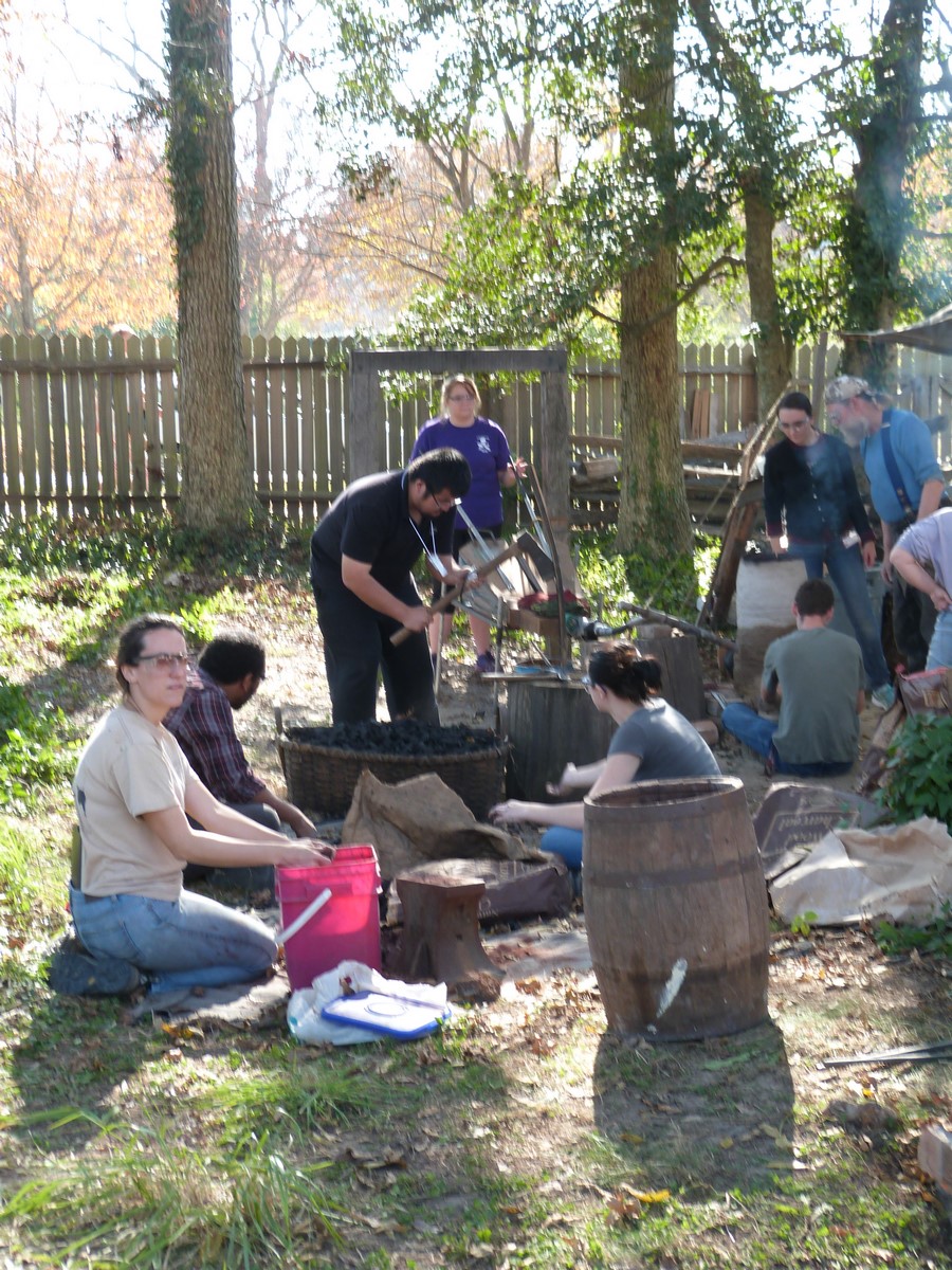 The breakout sessions on Saturday brought to me a new conference experience that I had never seen before. Having these sessions in Colonial Williamsburg brought a new level of context that I don’t believe had been achieved before. Having experimental archaeologists and prehistoric craftsmen displaying their skills next to their Williamsburg counterparts was excellent. By being in a public setting, visitors to Williamsburg were able to see new skills and the evolution of technology. The iron smelting demonstration by Neil Peterson ad Darrell Markewitz was very insightful. It is one thing to see a blacksmith make a nail, but having a bloomery furnace converting ore into iron next to the blacksmith's shop gave a deeper meaning to the experience. Visitors were able to see how much work was actually needed to make a single ingot, and they could then go inside and see what could be made from that ingot. Another demonstration I enjoyed was “bow making in a day” by Diederik Pomstra. The speed and skill that Diederik uses is astonishing, and it is always fun to see him work. These sorts of demonstrations are not seen often in the United States, and being able to share that with the public was a great contribution from the conference.